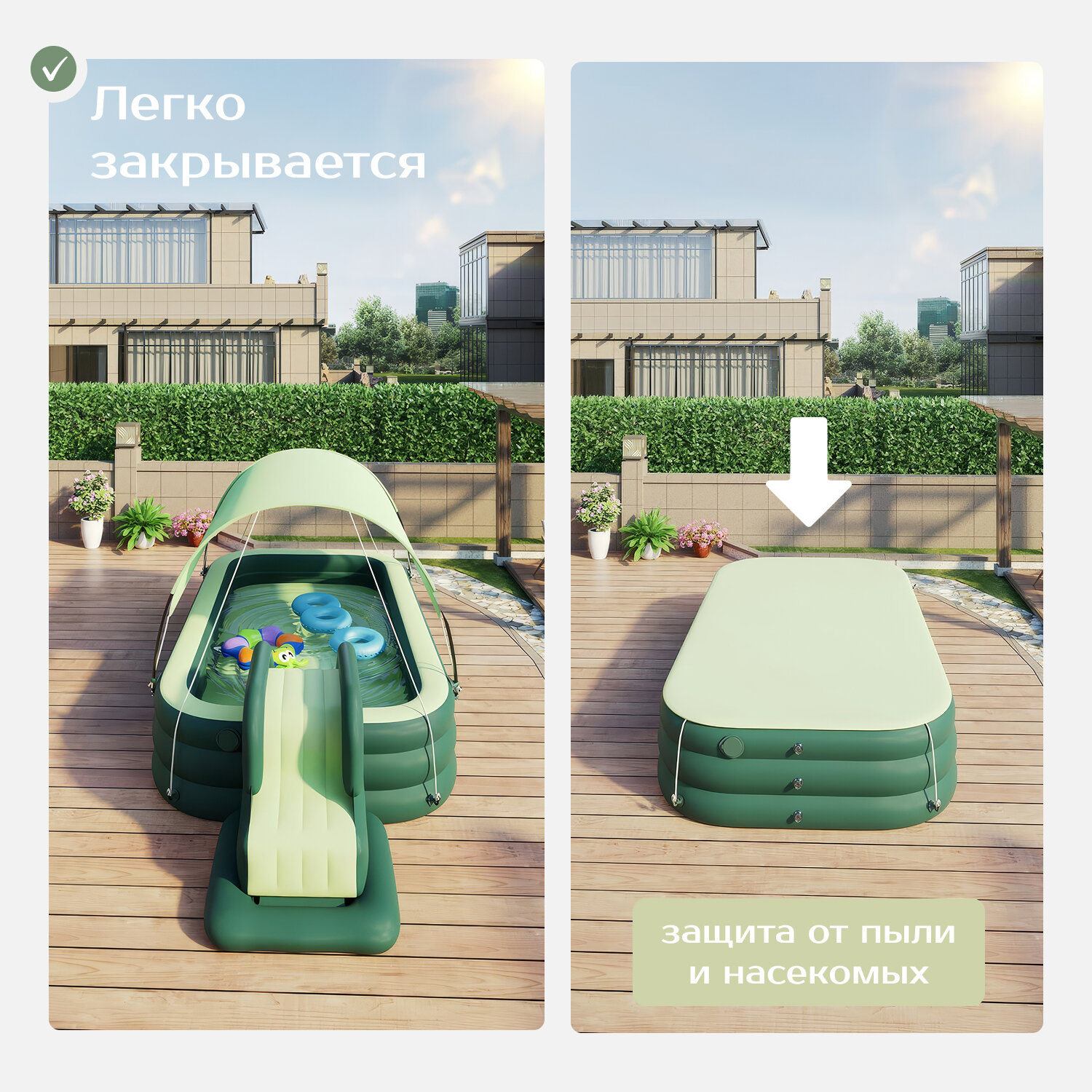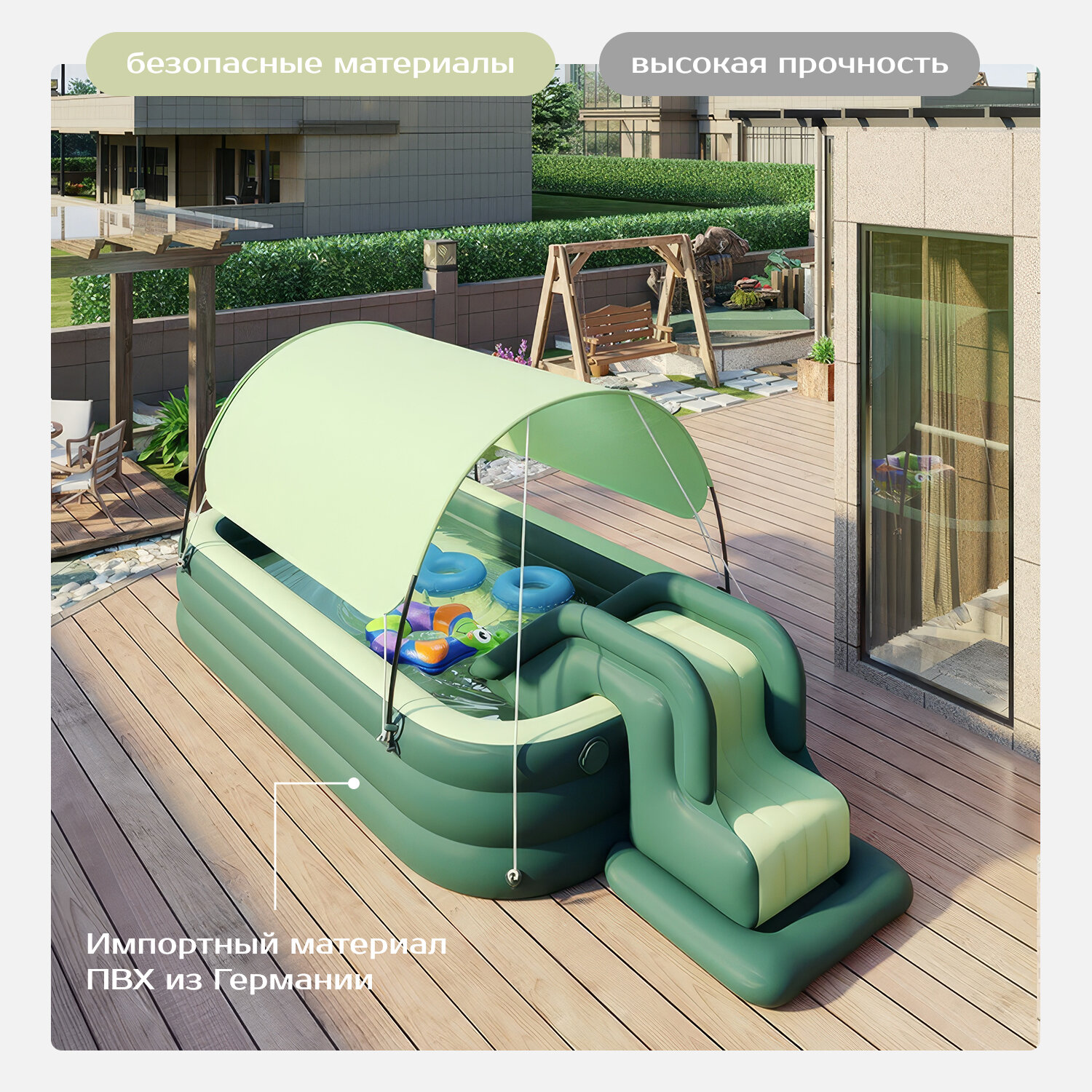 Купить Детский надувной бассейн, складной 2.6 метра зеленого цвета + тент