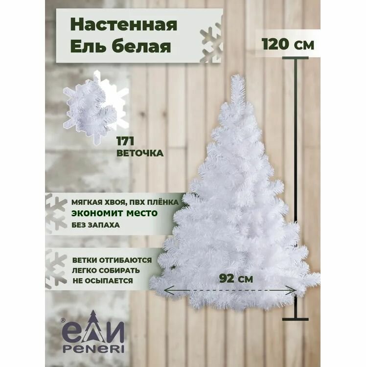 Настенная белая елка Классика 120 см, ПВХ, Ели PENERI E1912В
