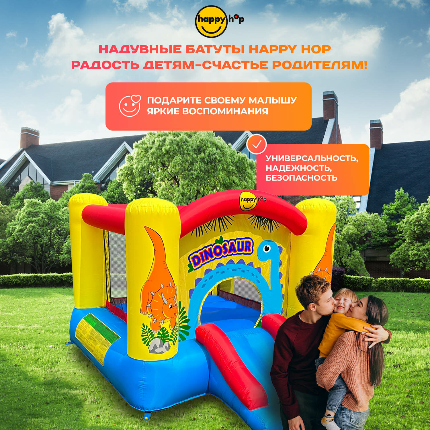 Ниже Вы можете прочитать отзывы на Детский надувной батут Happy Hop с горкой и защитной сеткой "Забавный Динозавр", 300х225х175 см, ознакомится с подробными характеристиками, посмотреть интересные обзоры и фотографии на Детский надувной батут Happy Hop с горкой и защитной сеткой "Забавный Динозавр", 300х225х175 см.