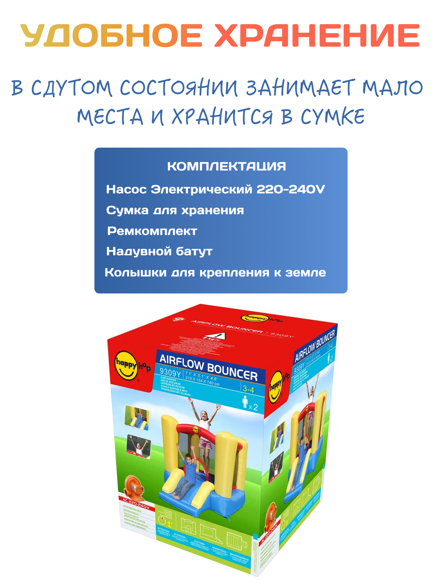 Купить Детский надувной батут для дома и улицы Happy Hop "Попрыгун 2", с горкой, с защитной сеткой, 215х154х140 см