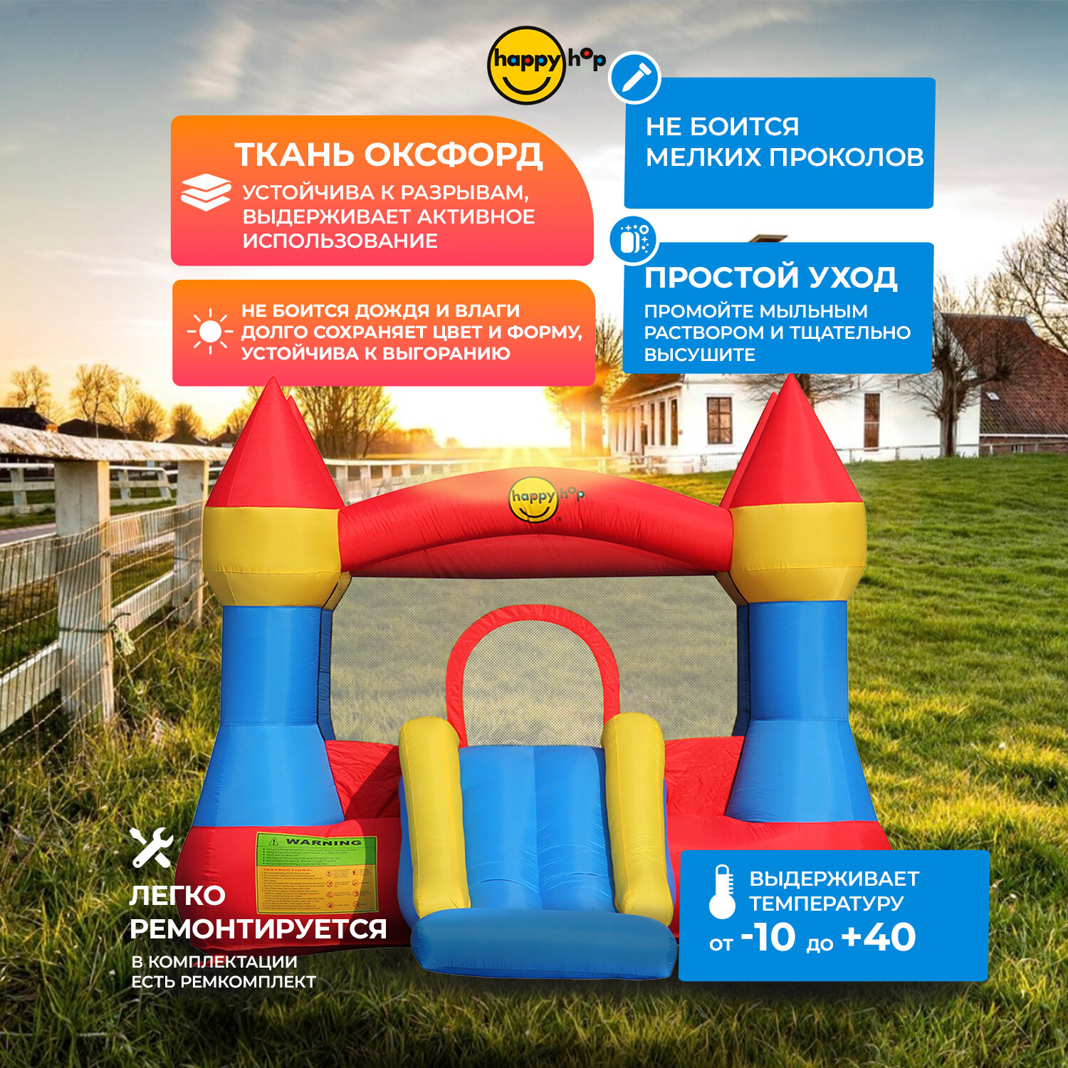 Ниже Вы можете прочитать отзывы на Детский надувной батут для дома и улицы Happy Hop "Супер прыжок ", с горкой , с защитной сеткой, 365х265х215 см, ознакомится с подробными характеристиками, посмотреть интересные обзоры и фотографии на Детский надувной батут для дома и улицы Happy Hop "Супер прыжок ", с горкой , с защитной сеткой, 365х265х215 см.