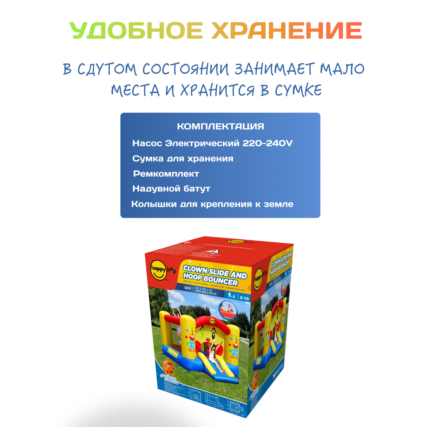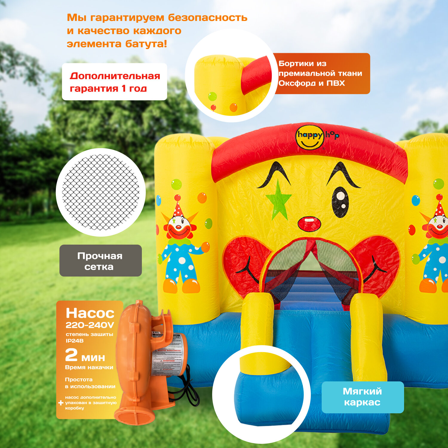 Купить Детский надувной батут Happy Hop с горкой и защитной сеткой "Забавный клоун", 300х225х175 см