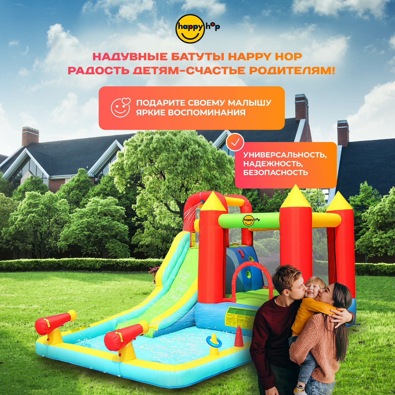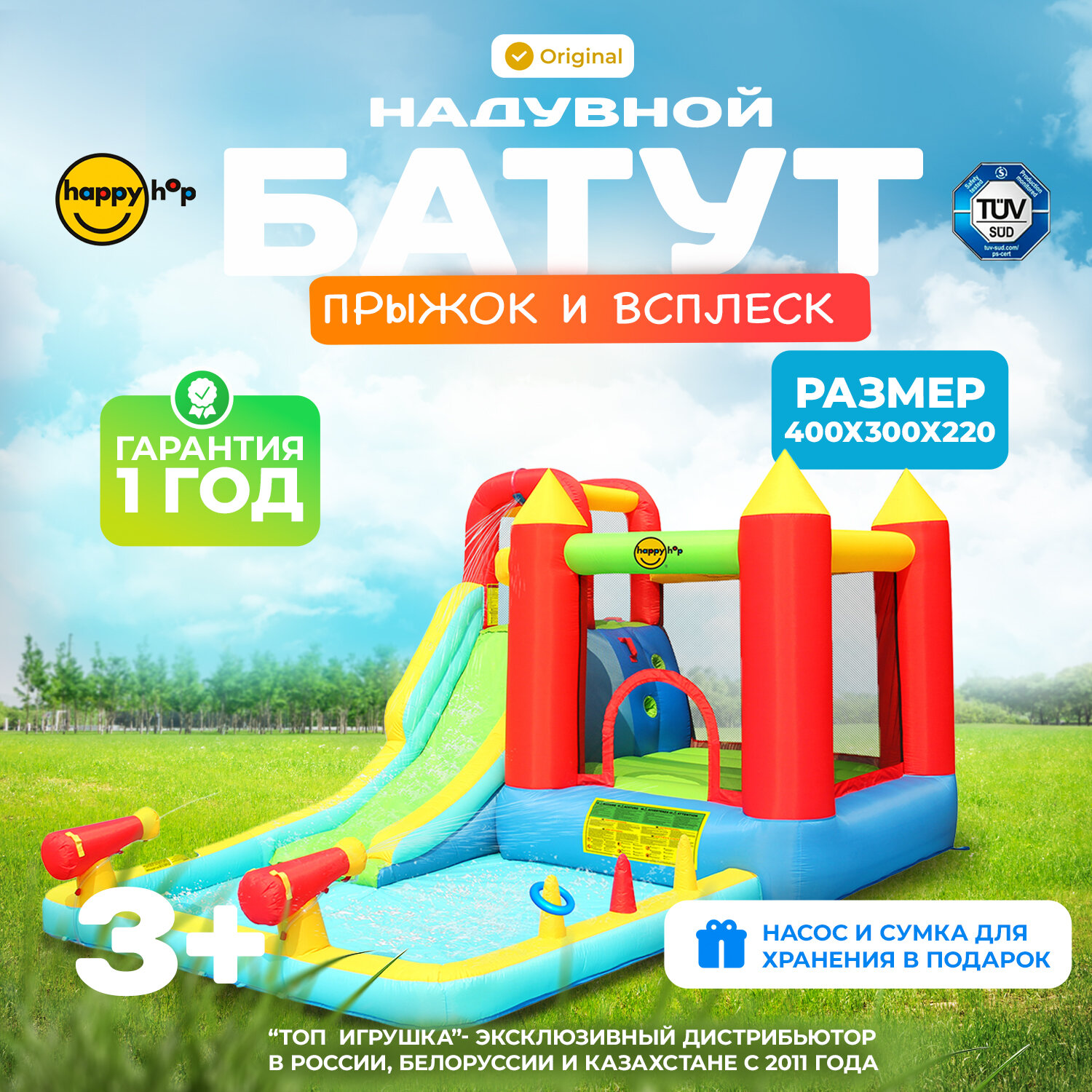 Детский надувной батут Happy Hop, для дома и улицы "Прыжок и всплеск", с горкой, с защитной сеткой, 400х300х220 см интересное: