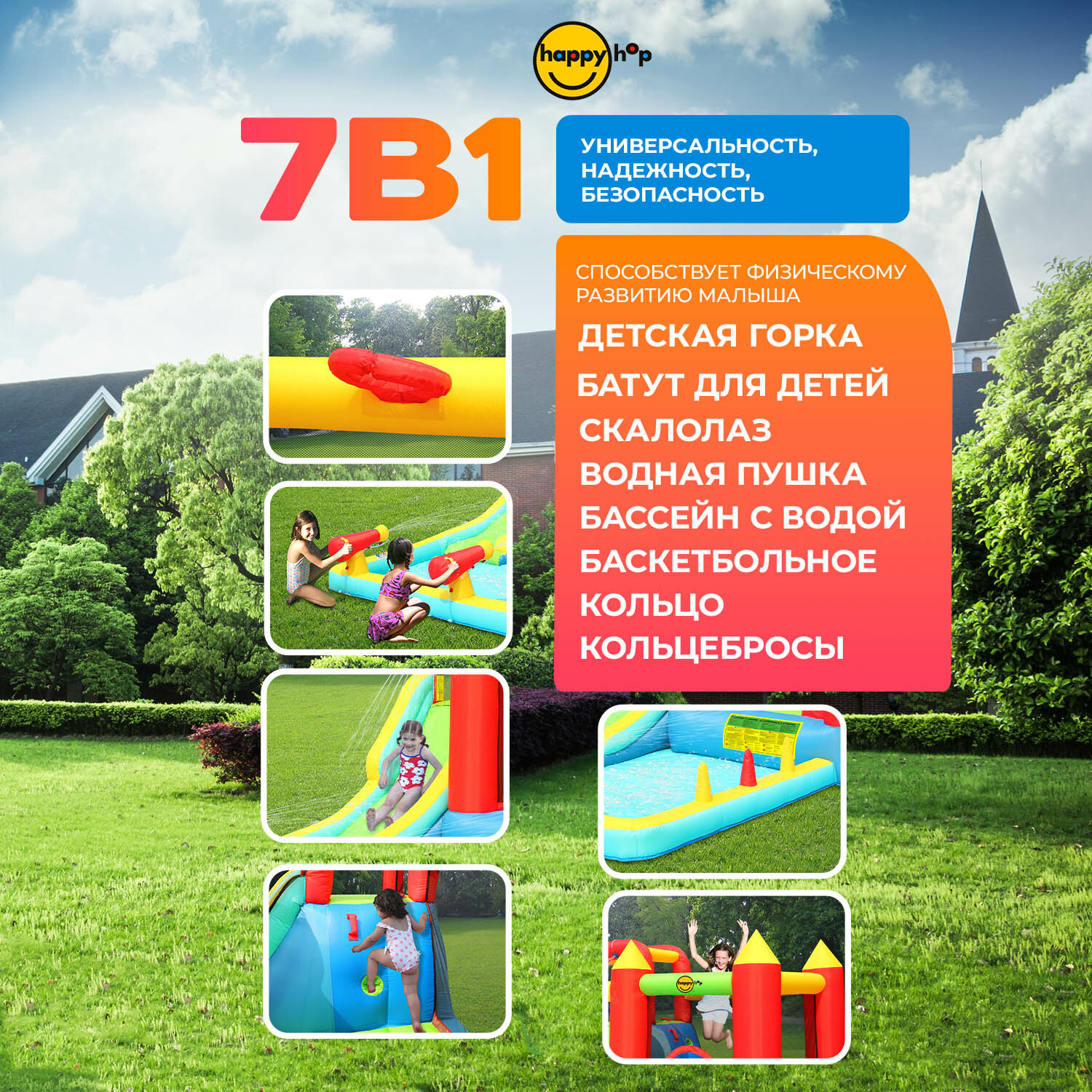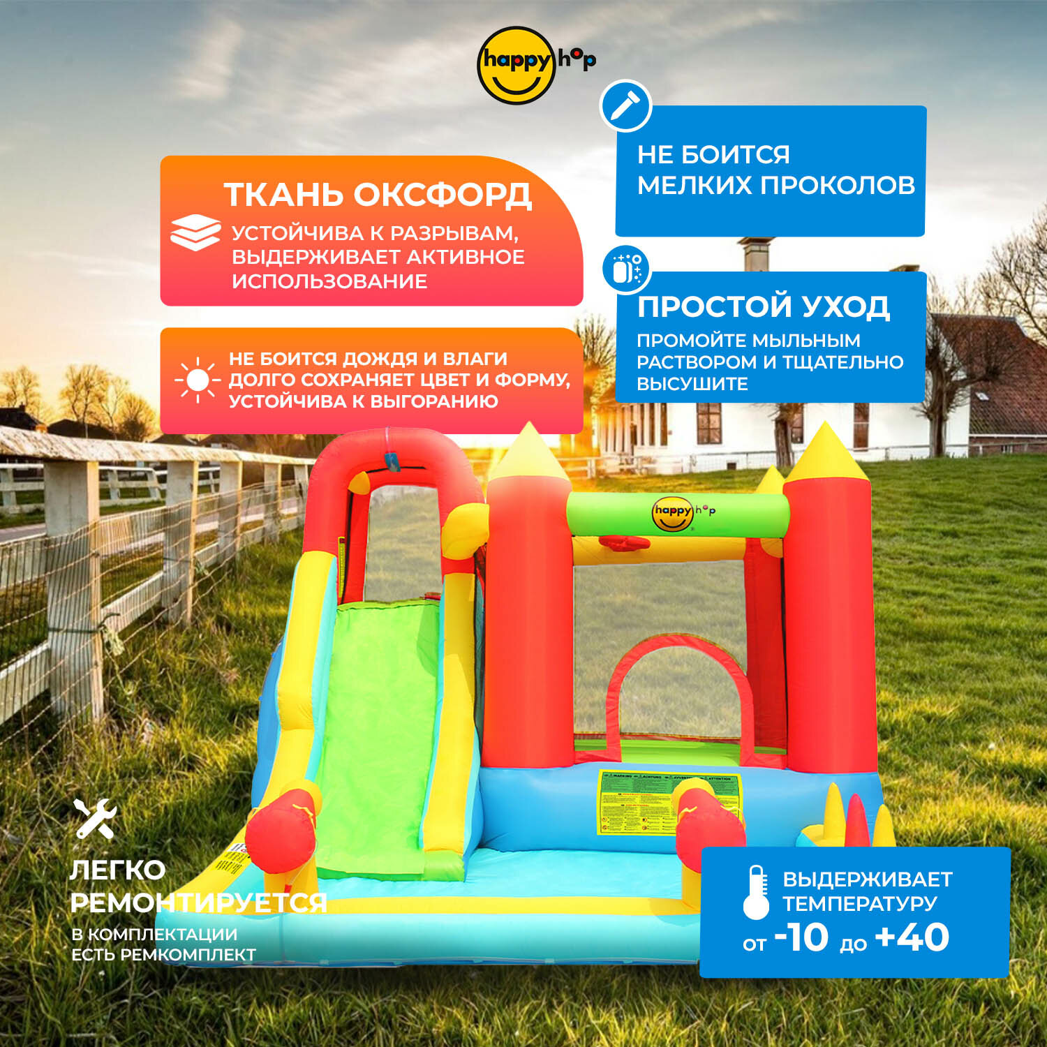 Купить Детский надувной батут Happy Hop, для дома и улицы "Прыжок и всплеск", с горкой, с защитной сеткой, 400х300х220 см