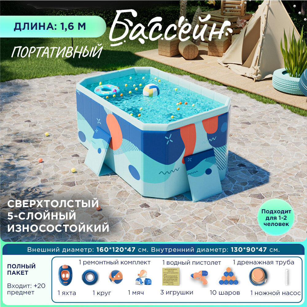 Складной детский плавательный бассейн домашний, 1.6 м, титановая алюминиевая опорная сталь пред максимальна комплектация