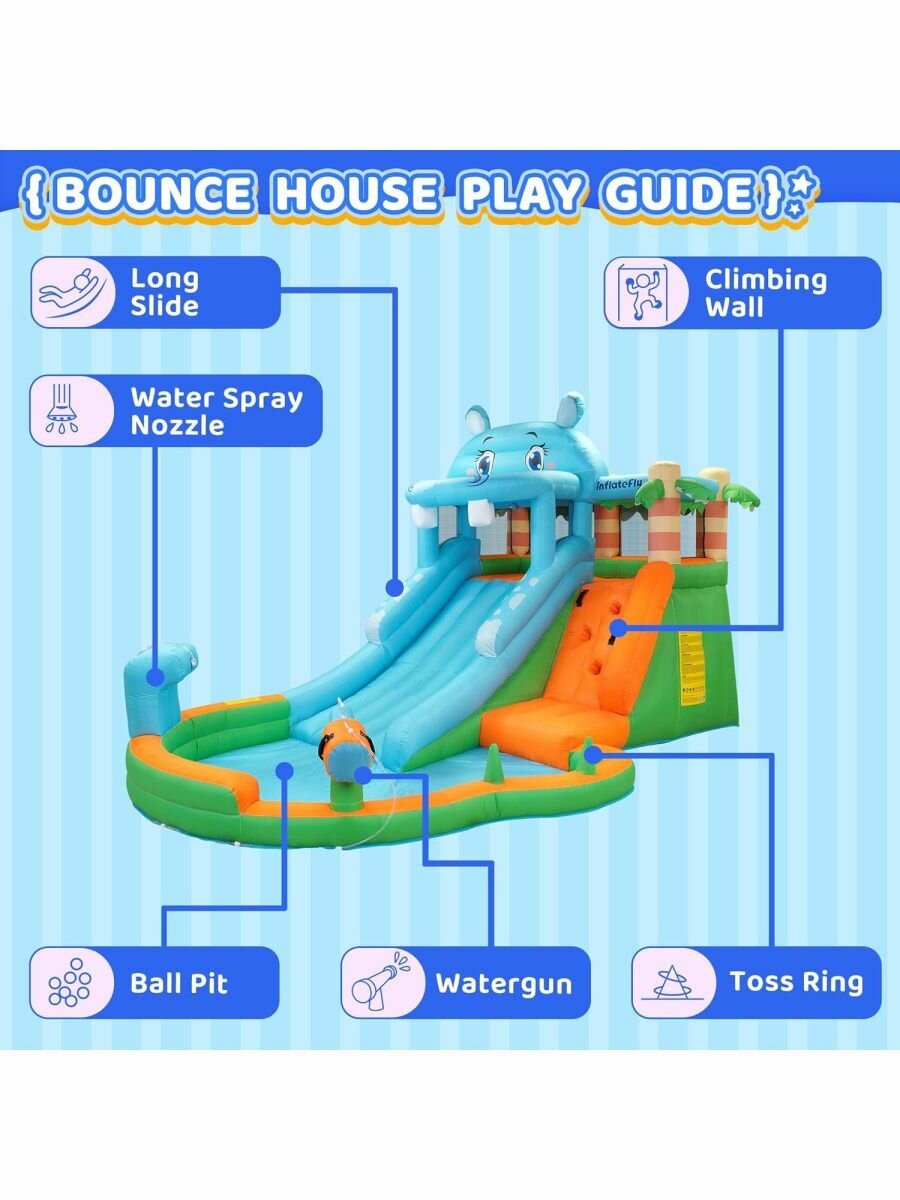 Купить Детский надувной дом с нагнетателем, бассейн с шариками, стена для лазания, водная горка
