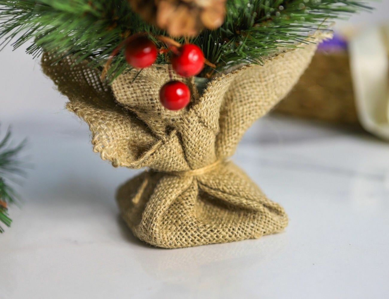 Настольная елка Тиффани 45 см с ягодами и шишками, леска, BEATREES 1020645