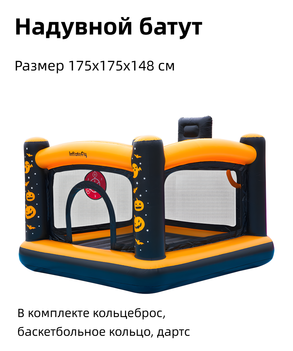 Надувной батут AirMyFun AI-70035 из ПВХ, 175x175x148 см, черный/оранжевый интересное: