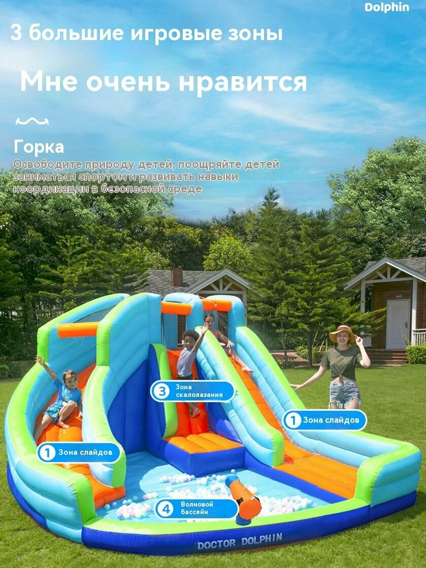Надувной замок, детская горка и батут, семейная комната в парке аттракционов, где можно взобраться на стену и поплавать в бассейне390*350*210cm33 интересное: