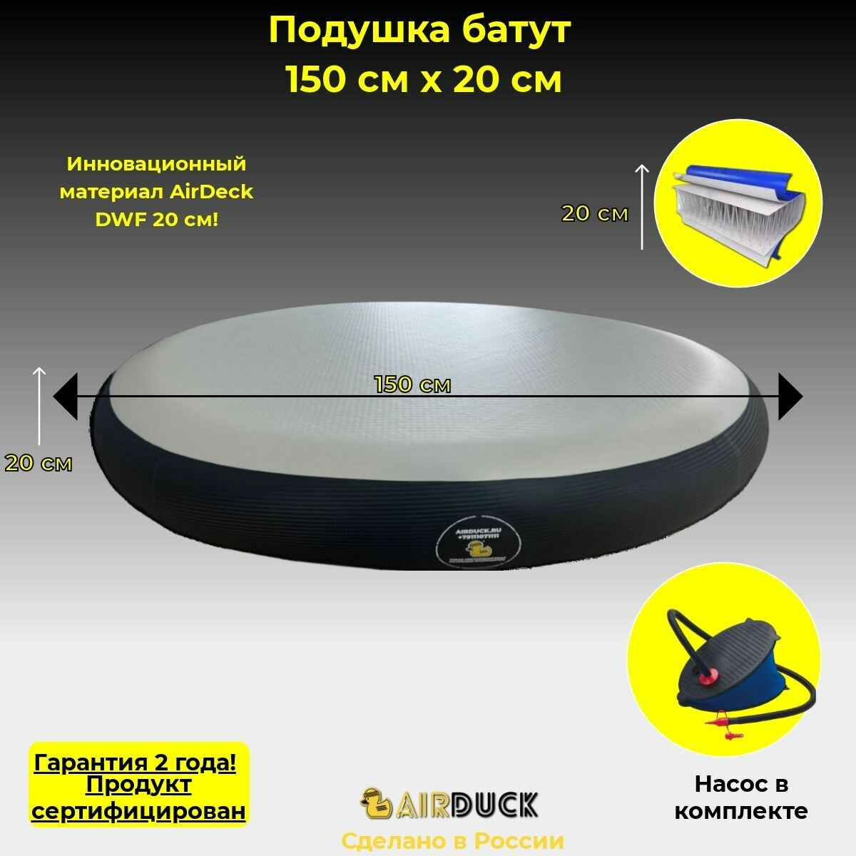 Надувной батут круг из AirDeck 1,5 м. Высота 20 см. интересное: