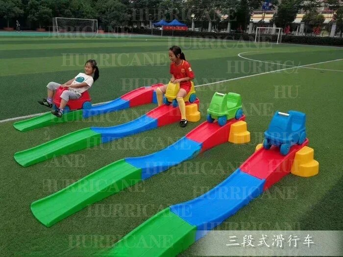 Детский сад, детская трехсекционная горка, детская дорожка, детская горка, автомобильная дорожка, Зеленый интересное: