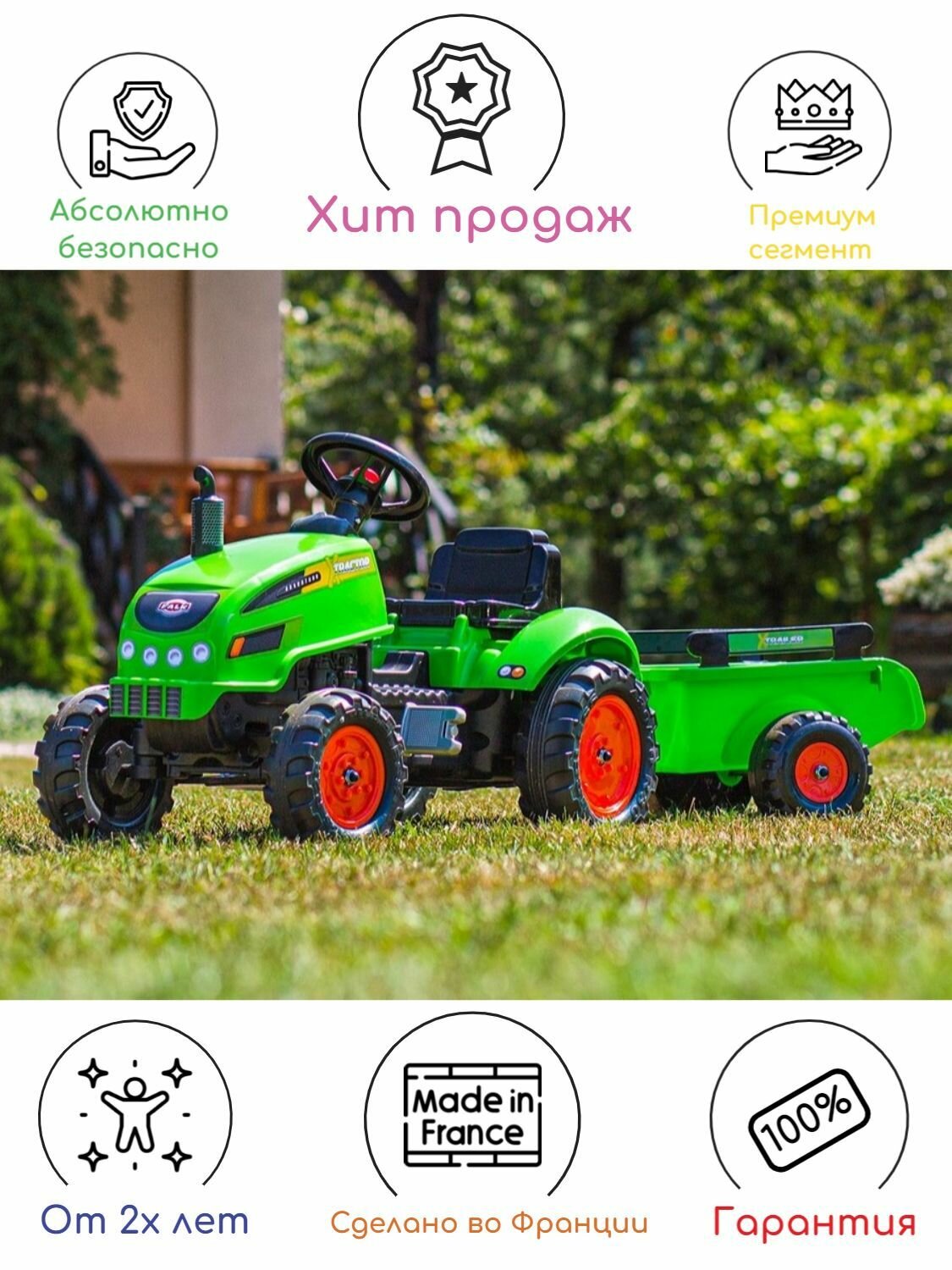 Ниже Вы можете прочитать отзывы на Трактор с педалями, открывающимся капотом и прицепом FALK; зеленый, ознакомится с подробными характеристиками, посмотреть интересные обзоры и фотографии на Трактор с педалями, открывающимся капотом и прицепом FALK; зеленый.