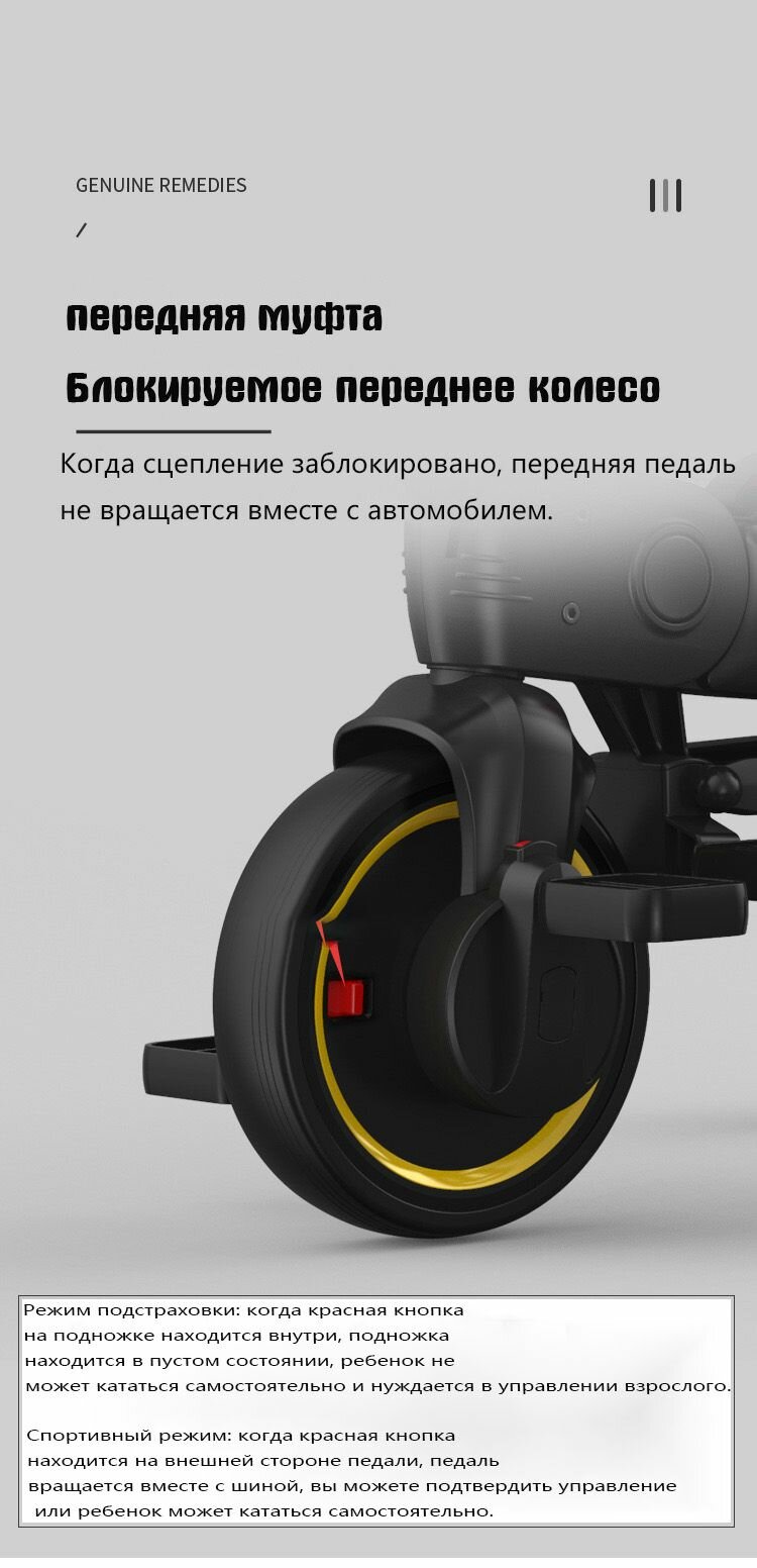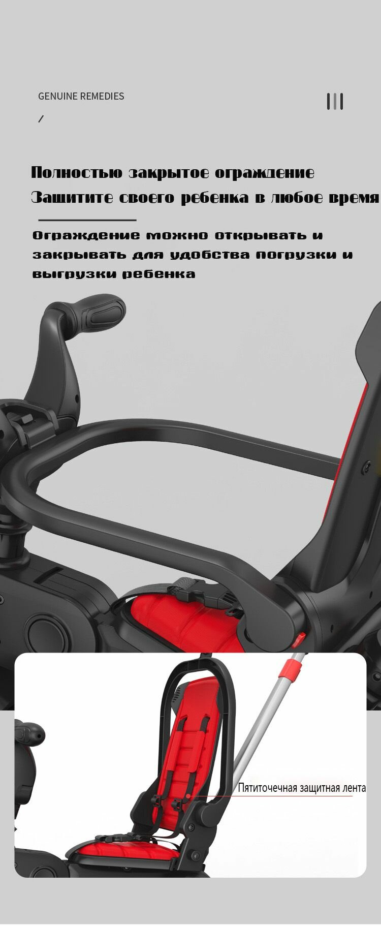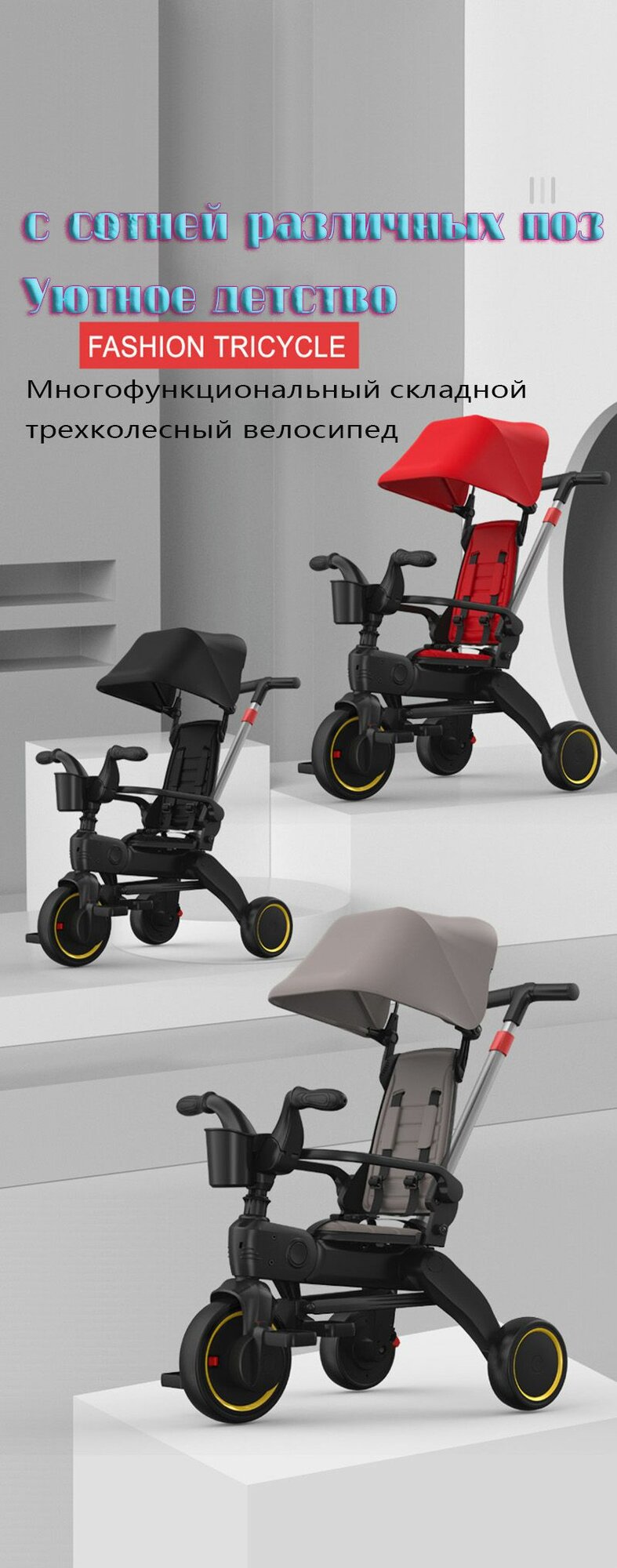 Складной детский трехколесный велосипед с родительским рулем, доступен в красном, черном и сером цветах интересное: