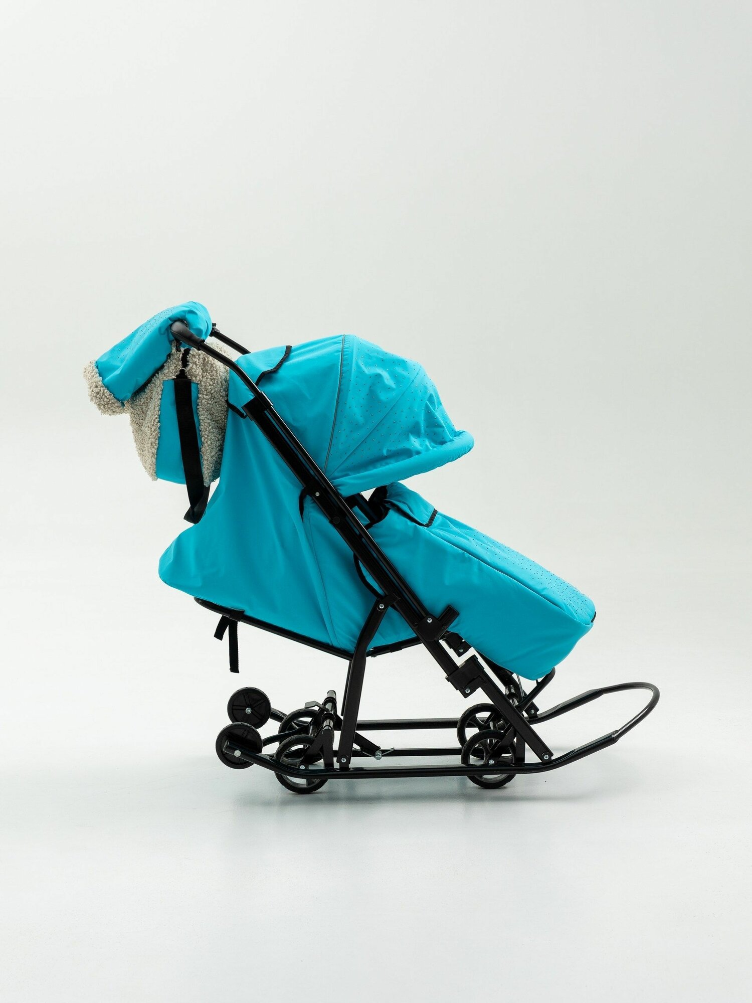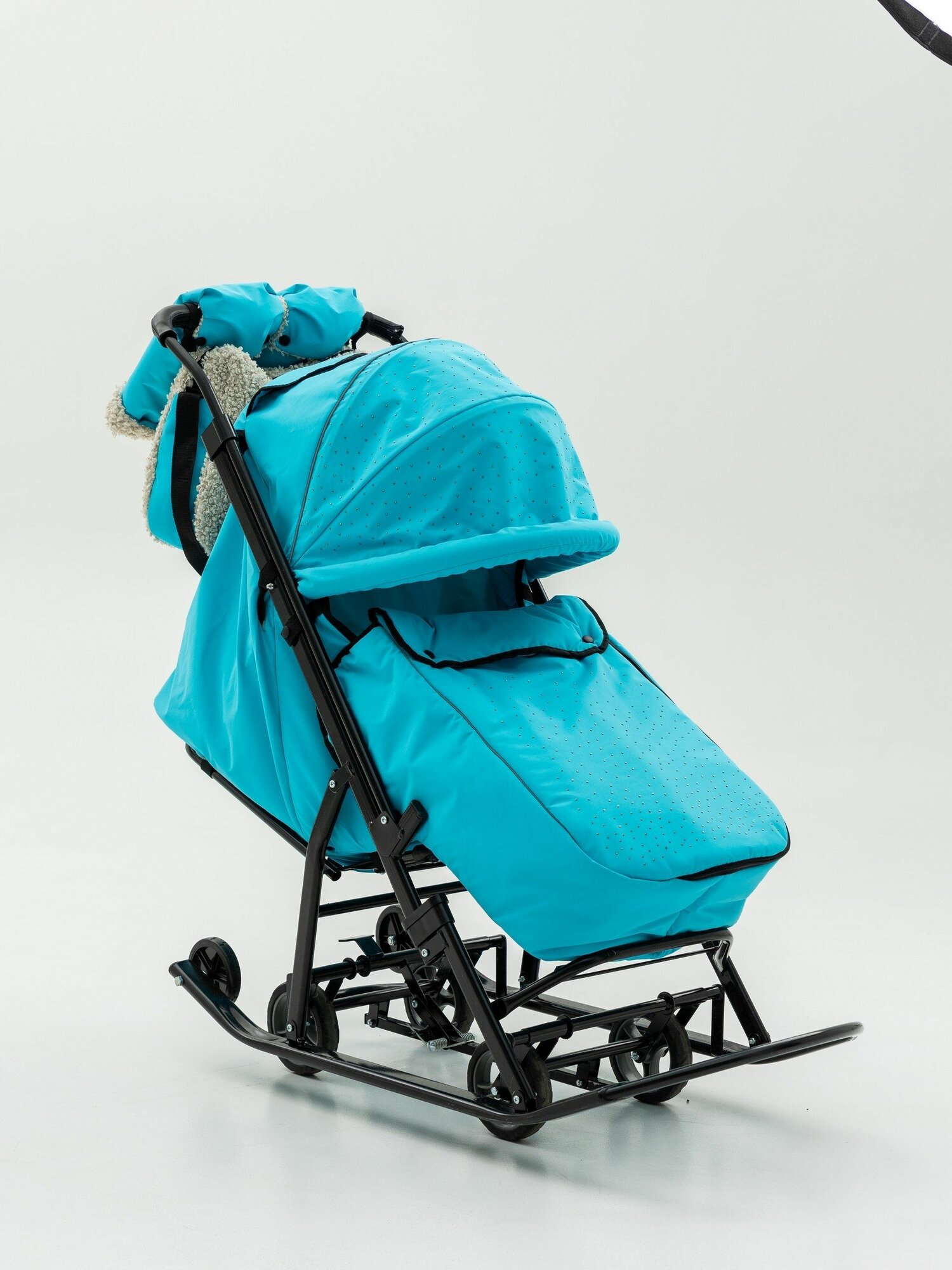 Купить Санки коляска детские зимняя Pikate "Brilliant" стразы, цвет тиффани