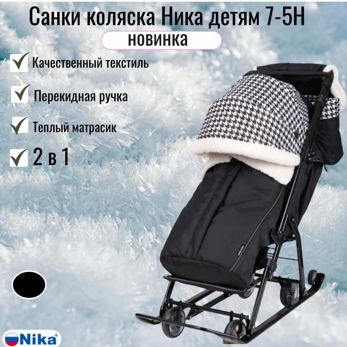 Санки коляска Ника Детям НД 7-5Н, принт гусиная лапка Новинка интересное: