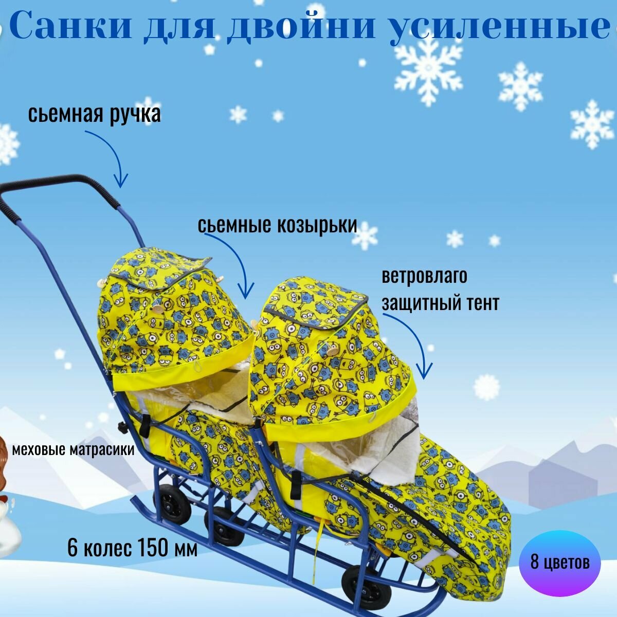 Купить Санки для двойни усиленные с колесами 6 колес 15 см , с козырьками , с чехлами