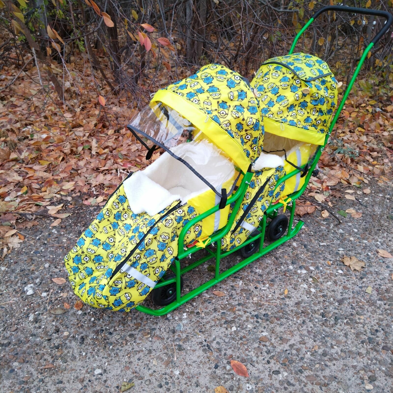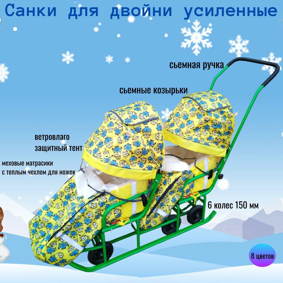 Купить Санки для двойни усиленные с козырьками/чехлами/с выдвижной колесной базой
