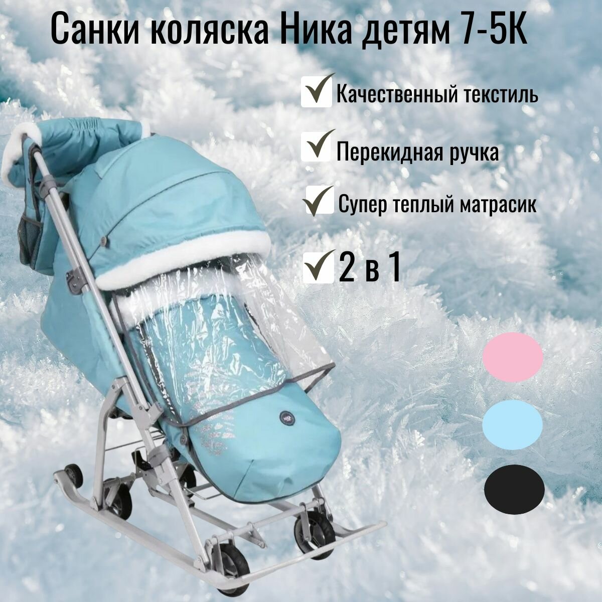 Санки коляска Ника детям 7-5К рама серая/с перекидной ручкой в полной комплектации интересное: