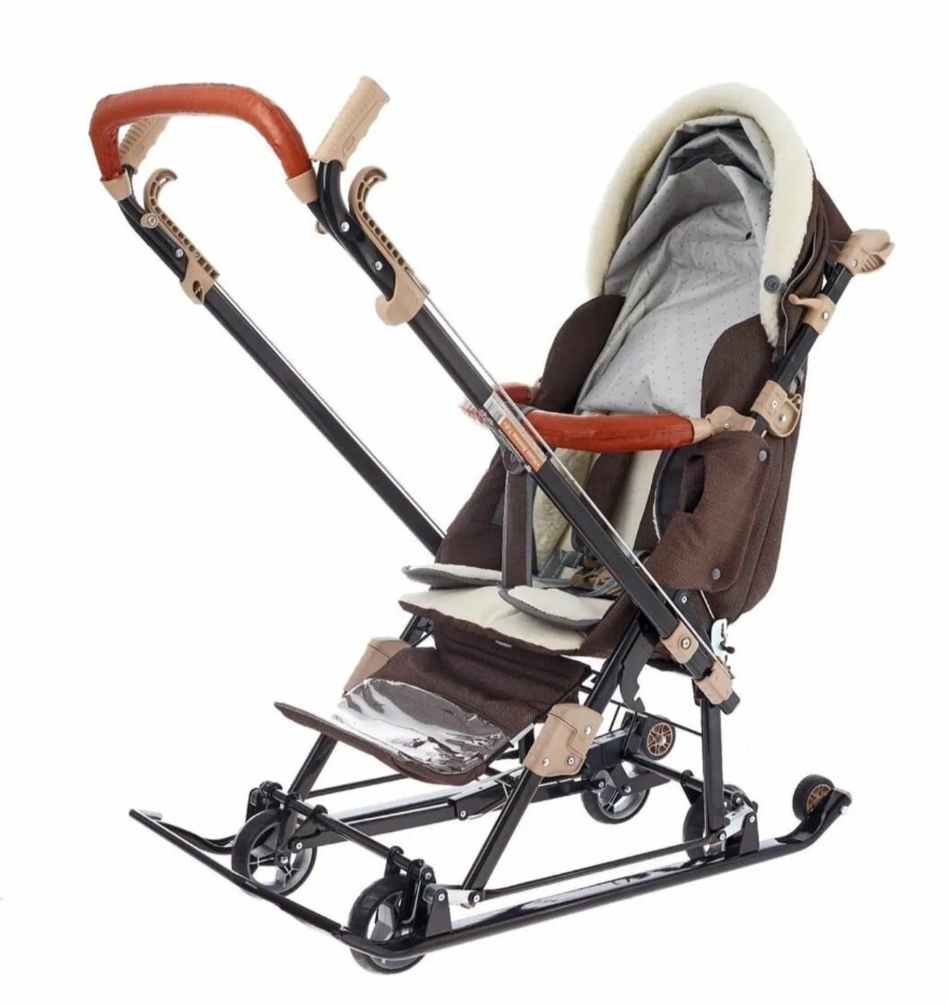 Санки коляска Ника детям 7-8К в елочку коричневый с бампером интересное: