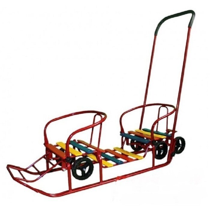 Санки для двойни с колесами Погодки Универсал 1 каркас красный, деревянные рейки мультиколор интересное: