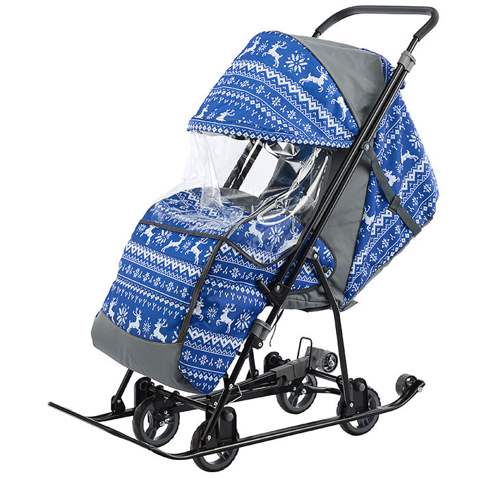 Санки-коляска детские с выдвижными колесами GALAXY Снежинка универсал-1 (олени на синем) интересное: