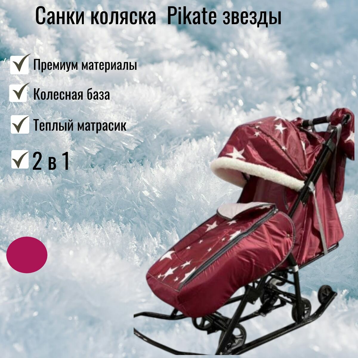 Санки коляска комбинированные Pikate звезды бордо интересное: