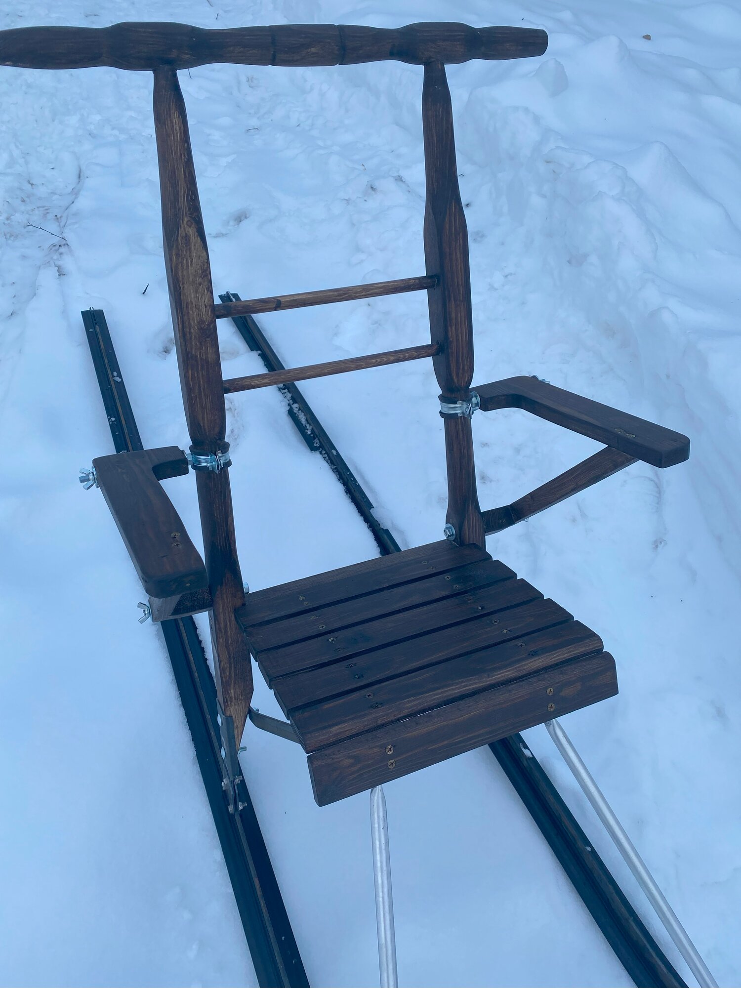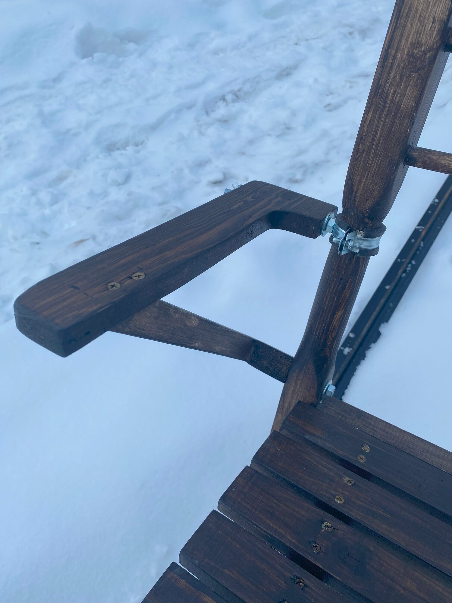 Финские сани для детей и взрослых с подлокотниками, накладками на полозья для катания по снегу, складные, 175х56х86 см интересное: