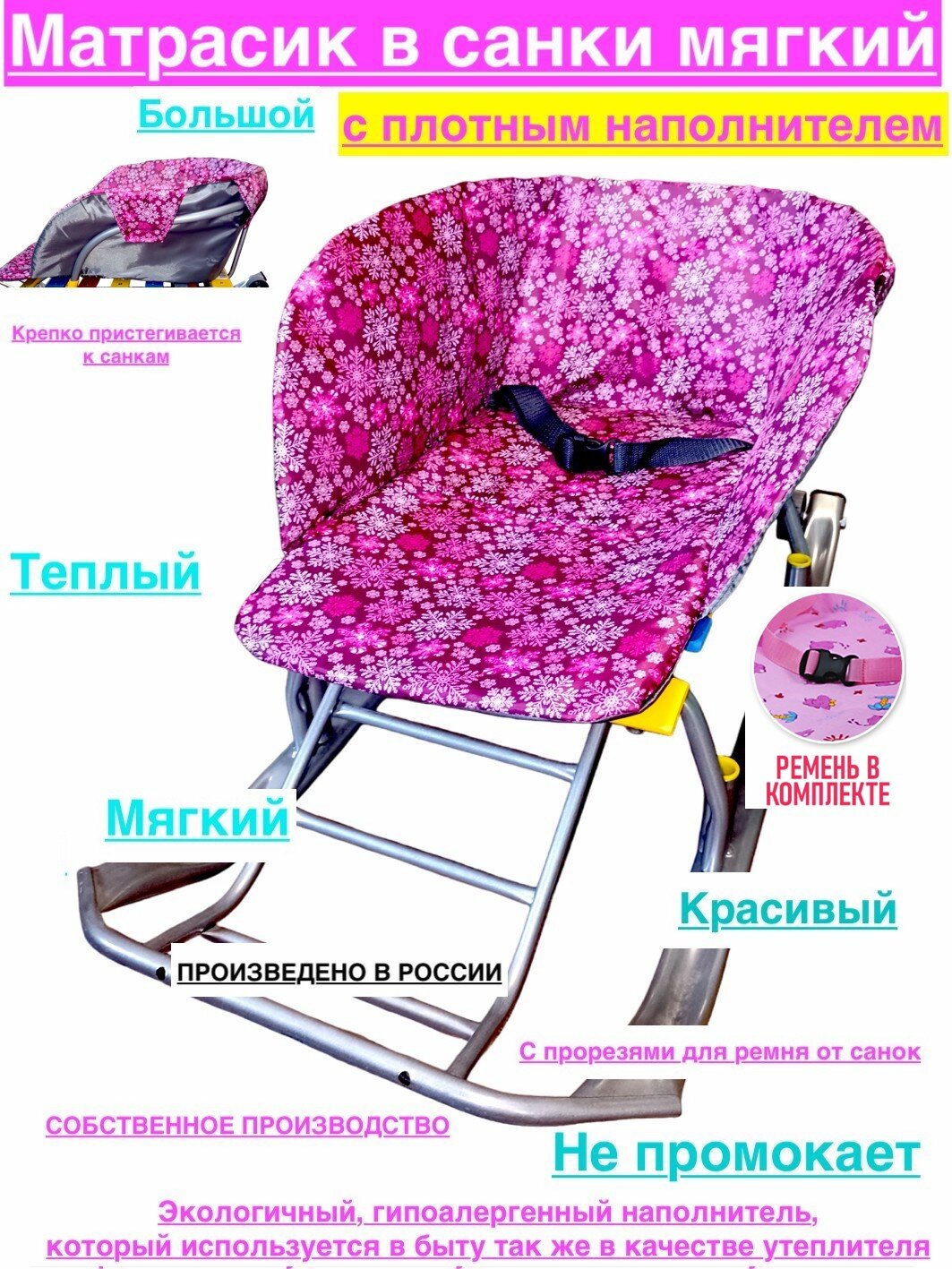 Матрасик утепленный-снежинки-пух, ткань с водоотталкивающей пропиткой, утепленный! Матрасик для санок с наполнителем.