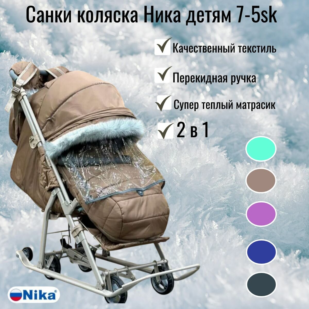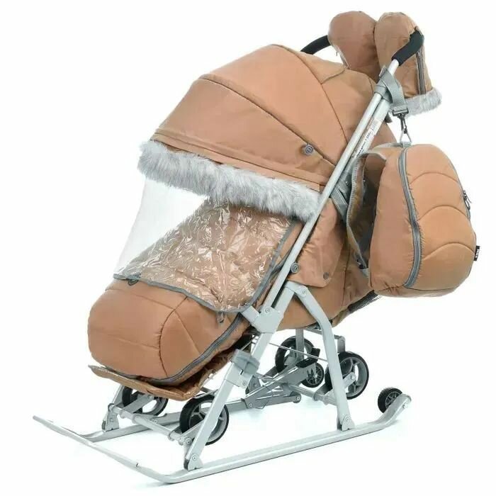 Санки коляска Ника детям 7-5SK бежевый с бампером интересное: