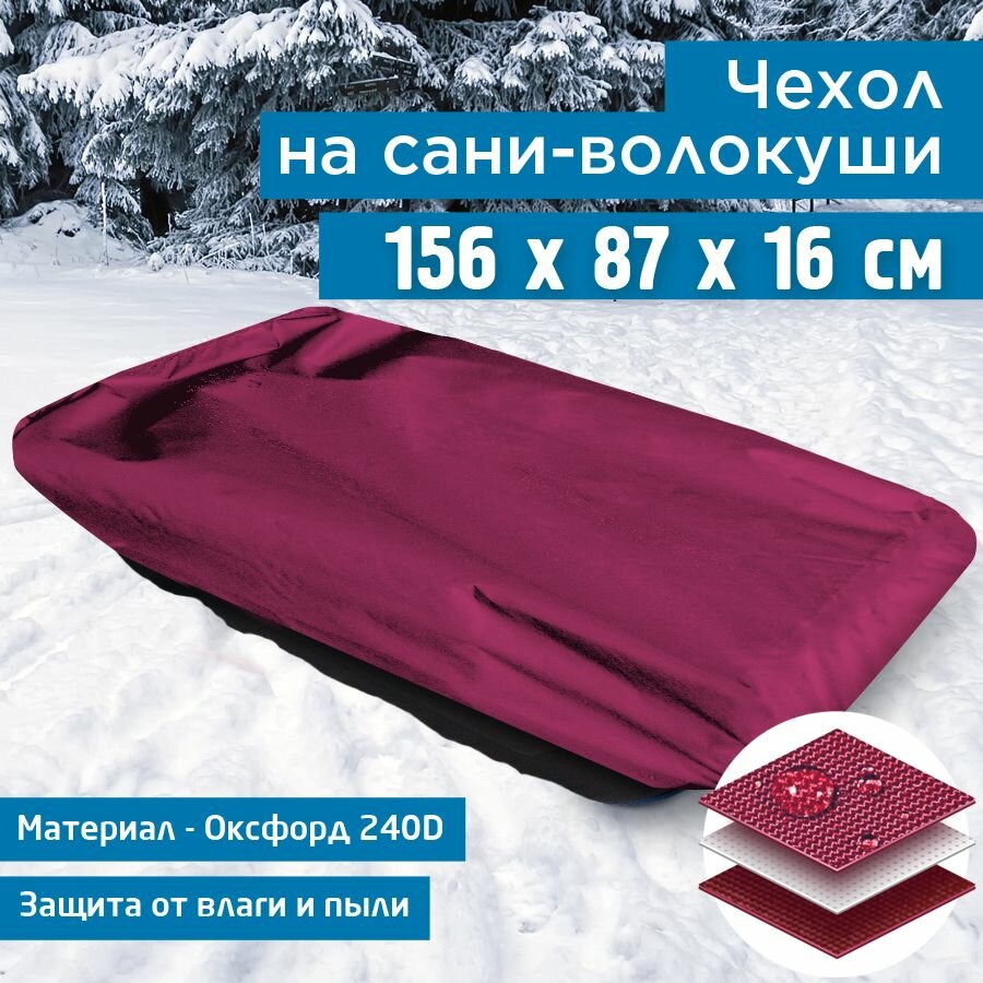 Чехол на сани волокуши JEONIX, водонепроницаемый, 156х87х16 см, бордовый интересное: