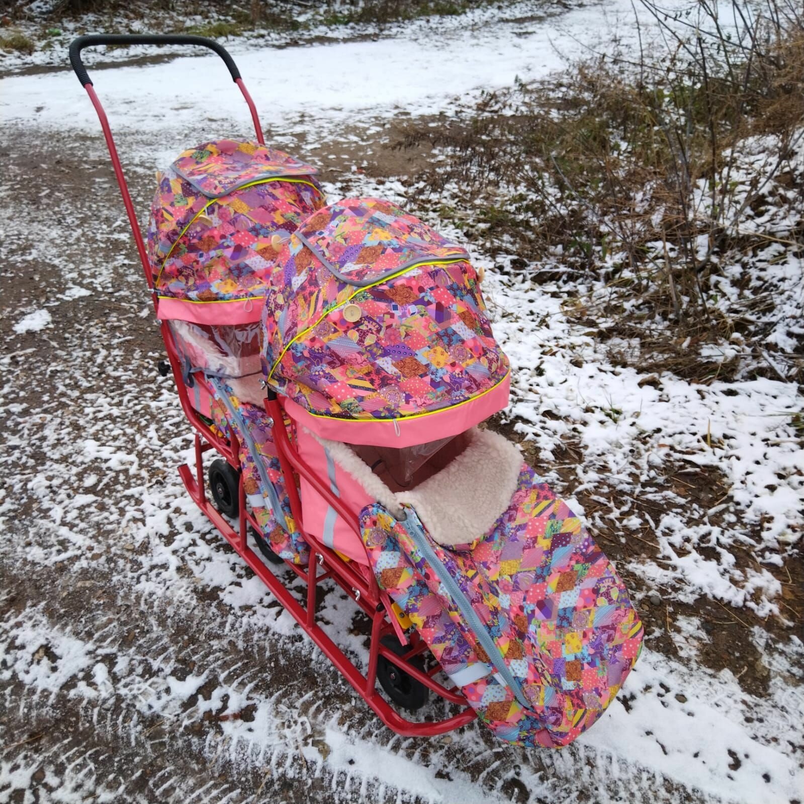 Санки для двойни усиленные с выдвижной колёсной базой/козырьки/чехлы интересное: