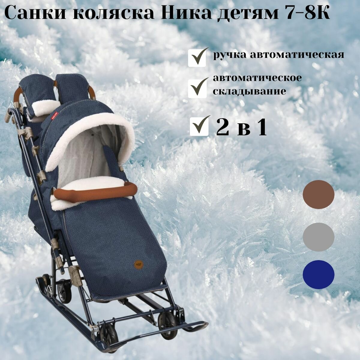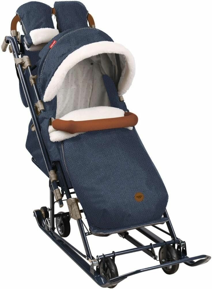 Санки коляска Ника детям 7-8К в елочку синий утепленные интересное: