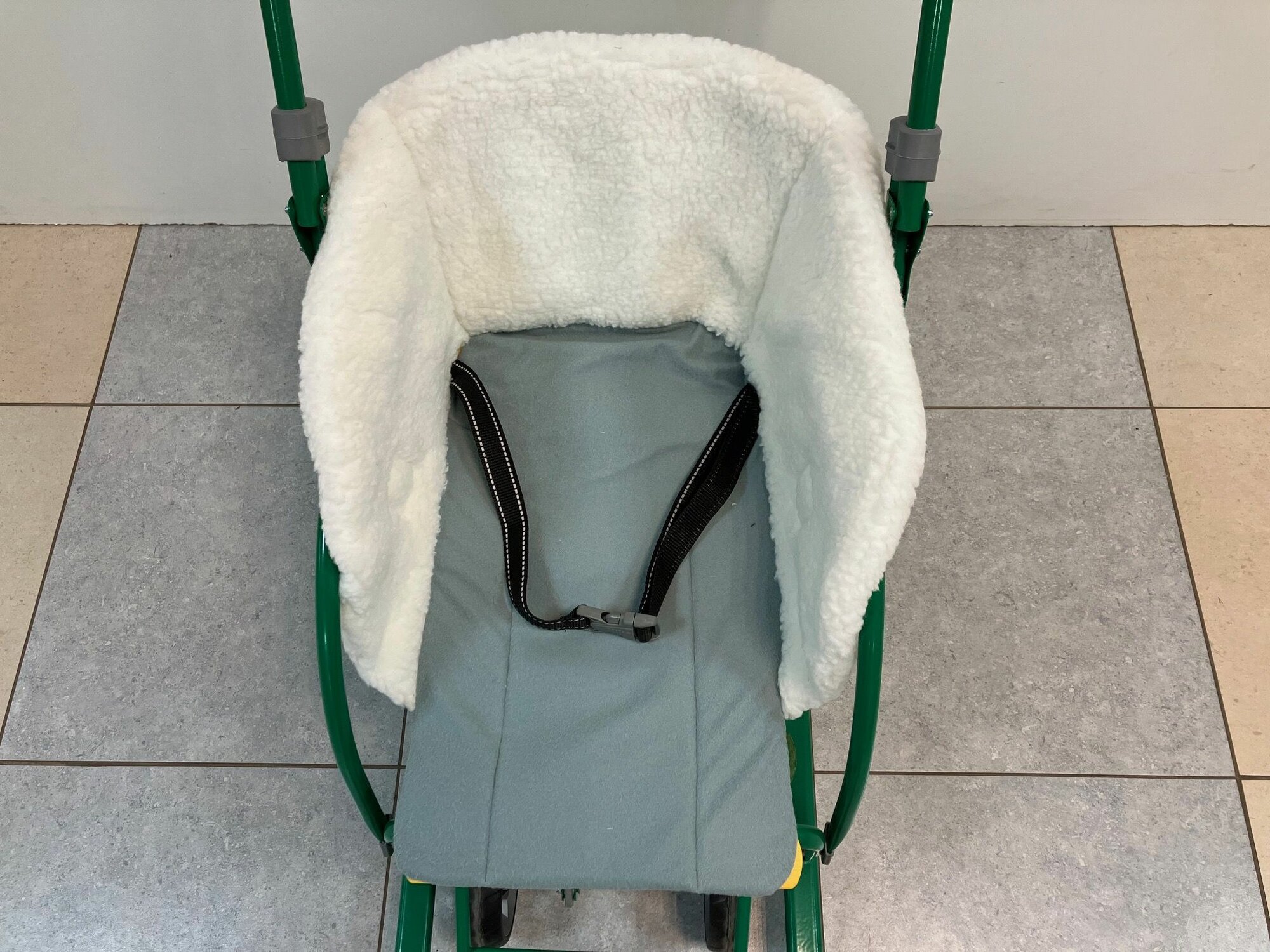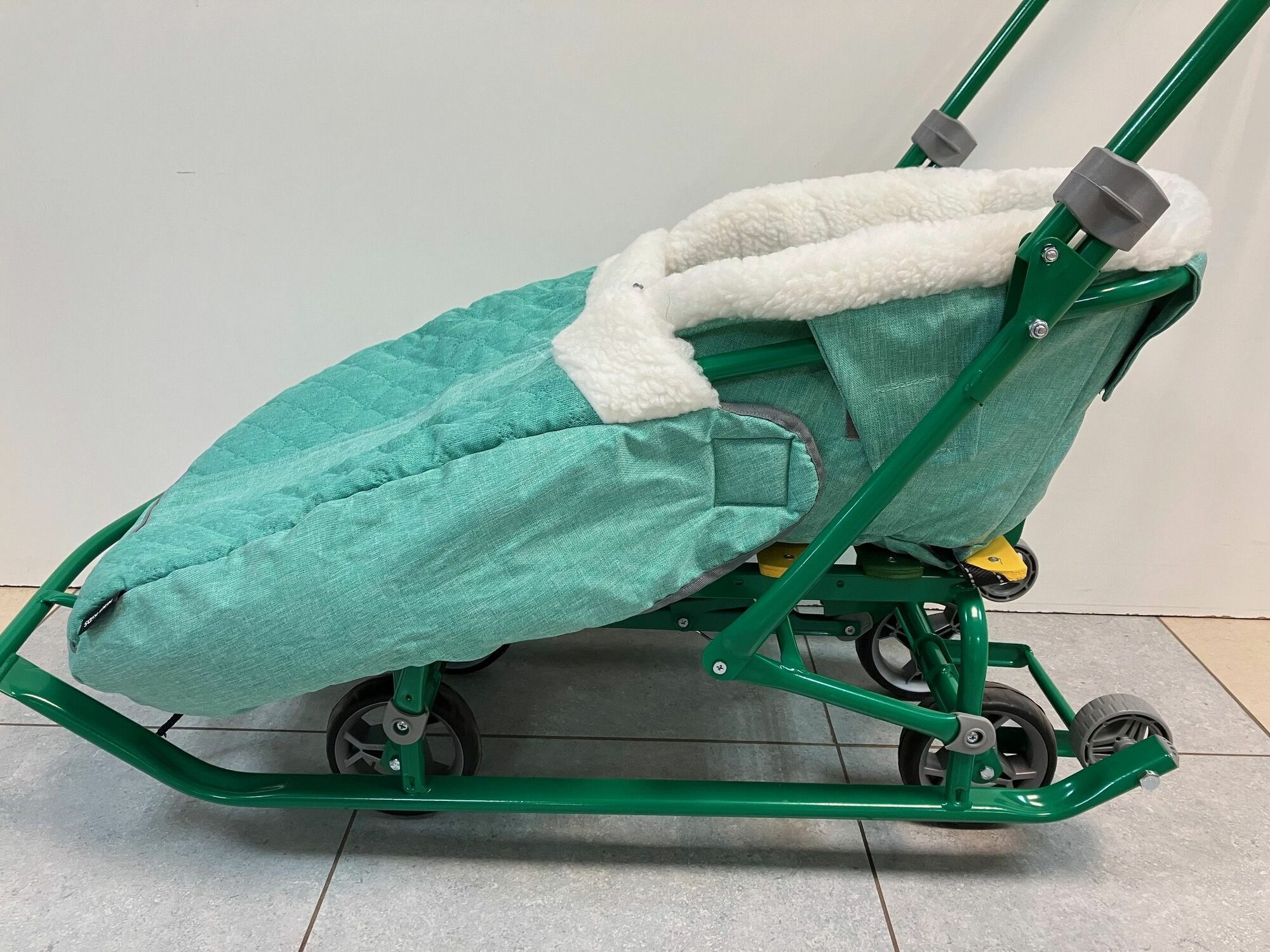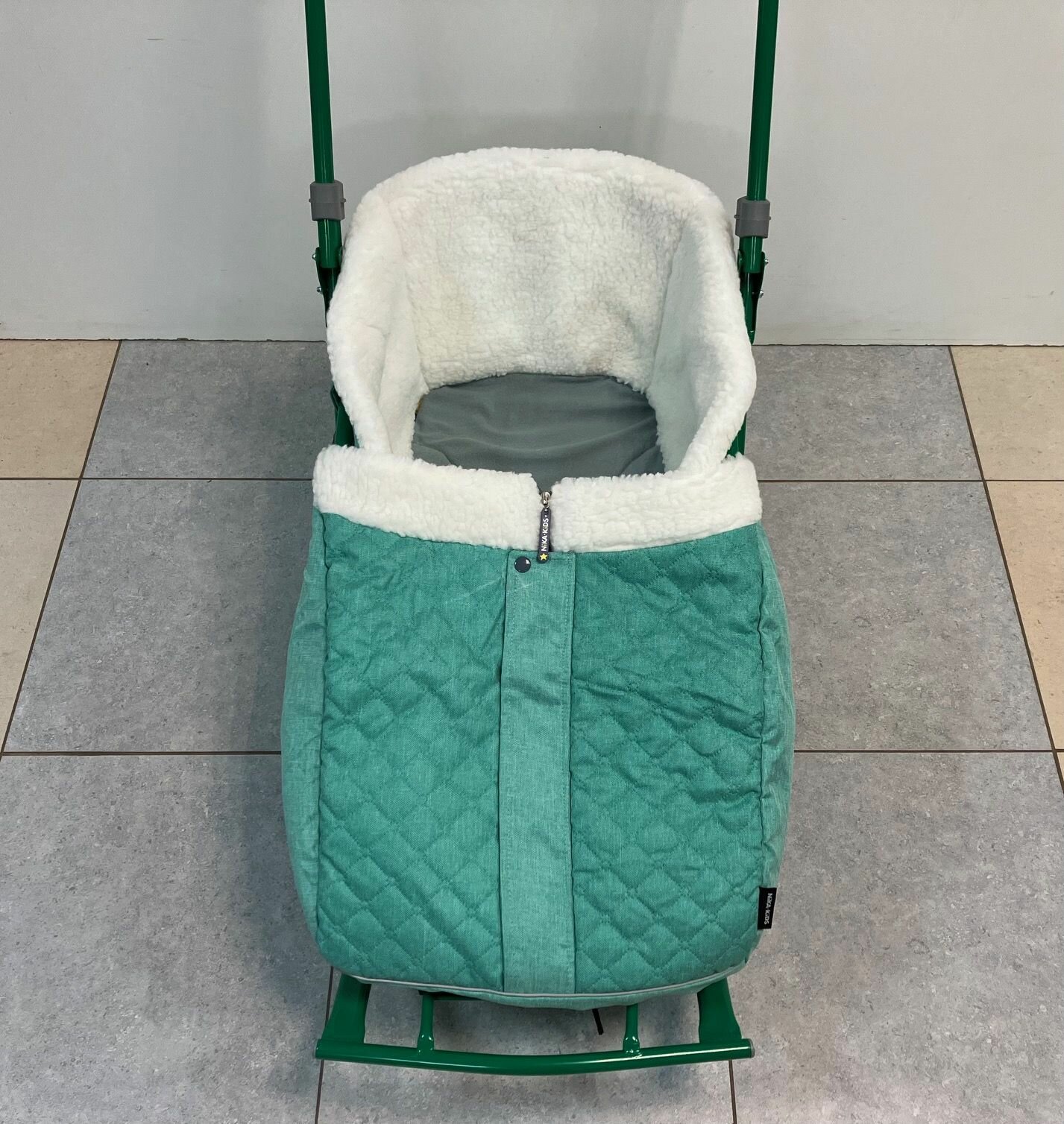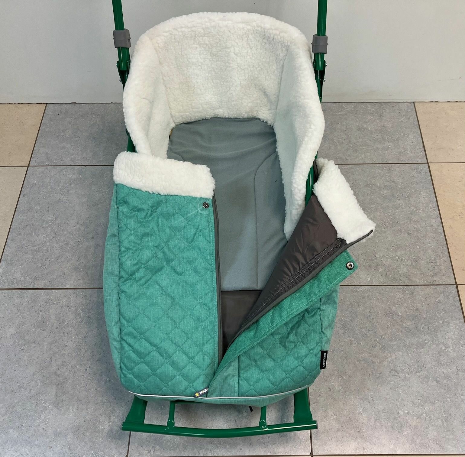 Матрасик для санок Nika с чехлом для ног в джинсовом стиле зеленый с молнией интересное: