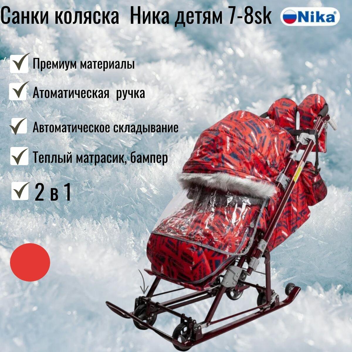 Санки коляска Ника детям 7-8SK Спортивный красный интересное: