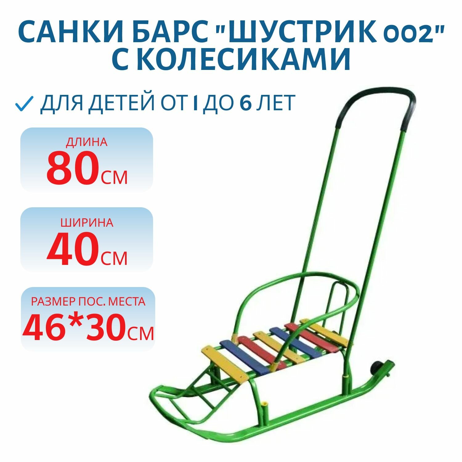 Санки Барс "Шустрик 002" с колесиками, цвет зеленый интересное: