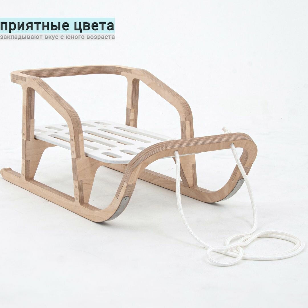Санки детские деревянные со спинкой SANKIsled, красивые, белые интересное: