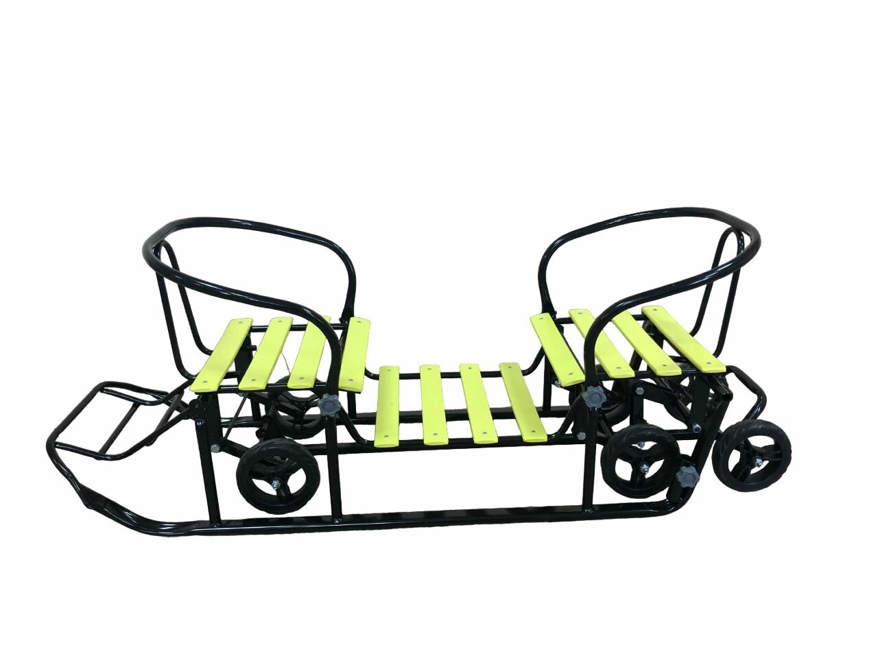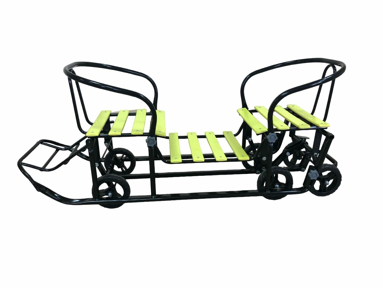 Купить Санки для двойни с колесами Погодки Универсал 1 лимонные на черном каркасе