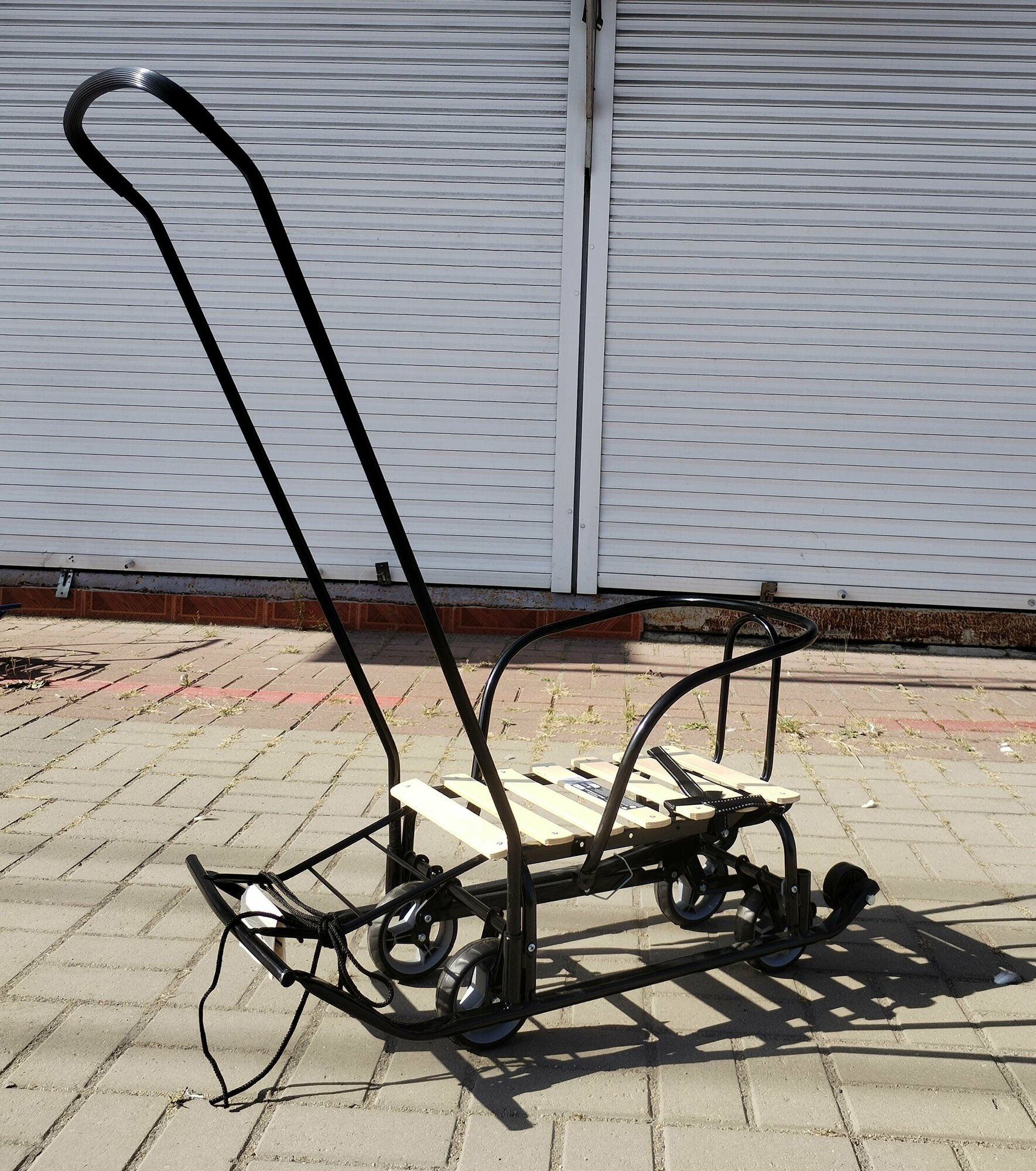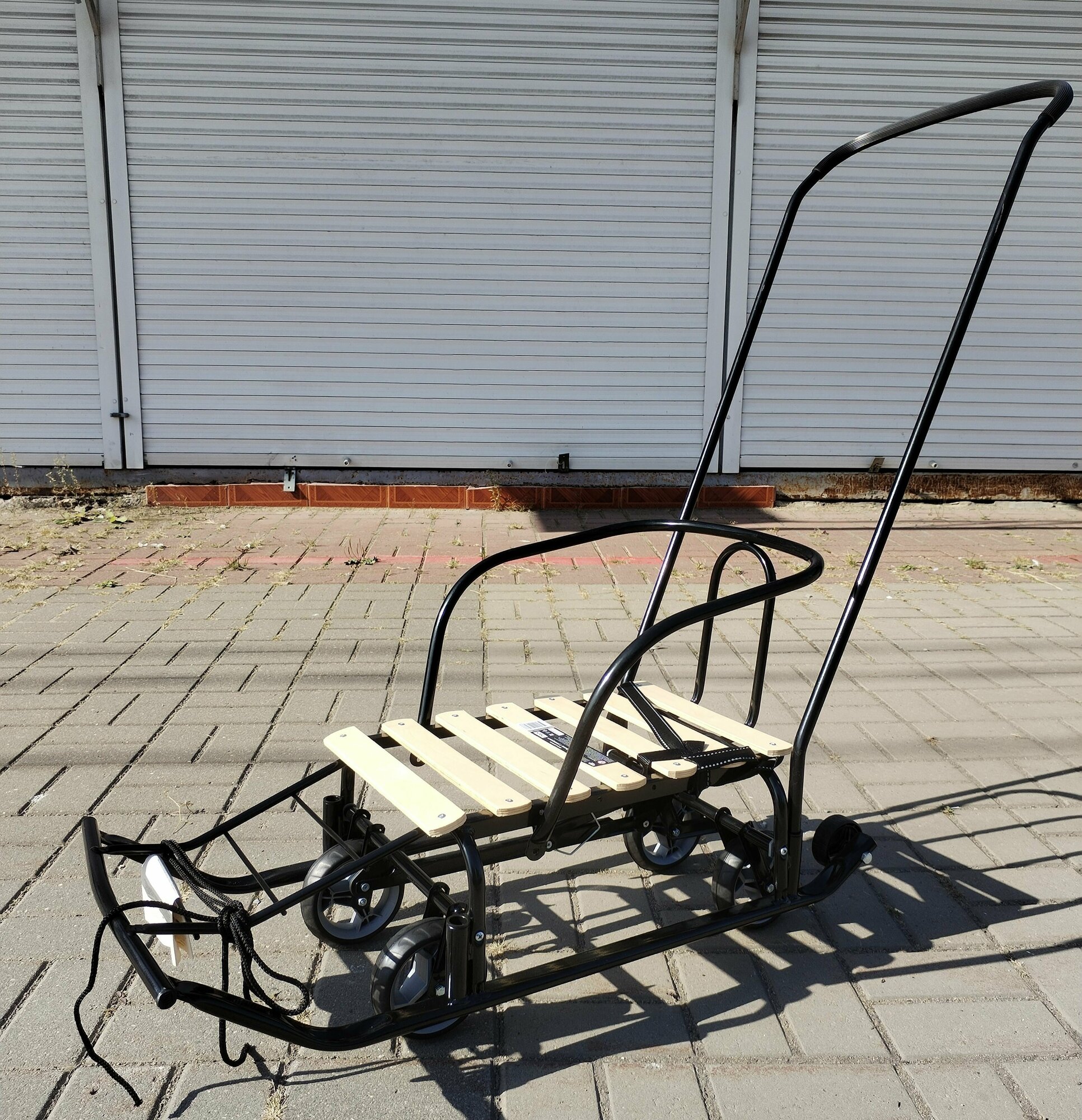 Санки детские с колесами и родительской ручкой