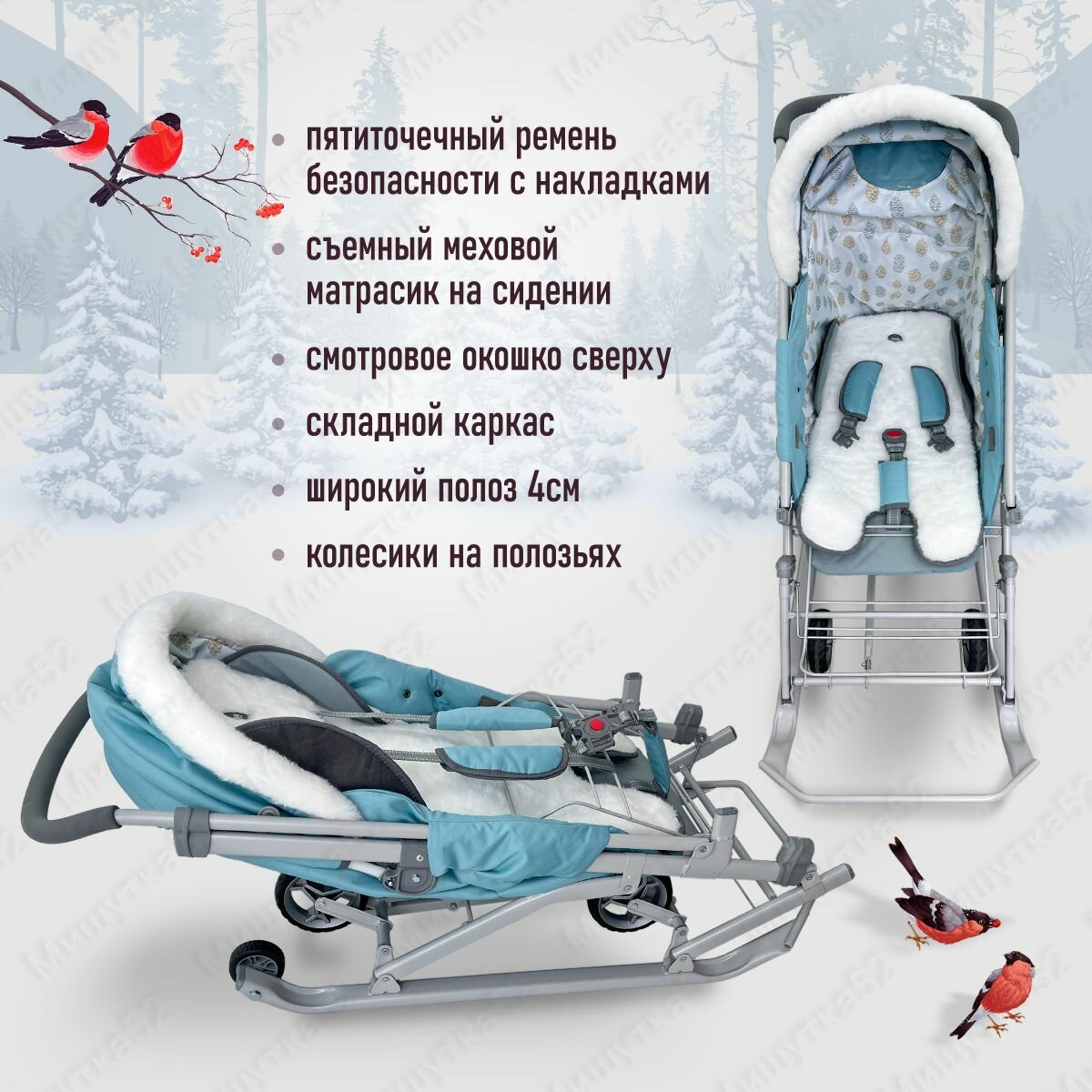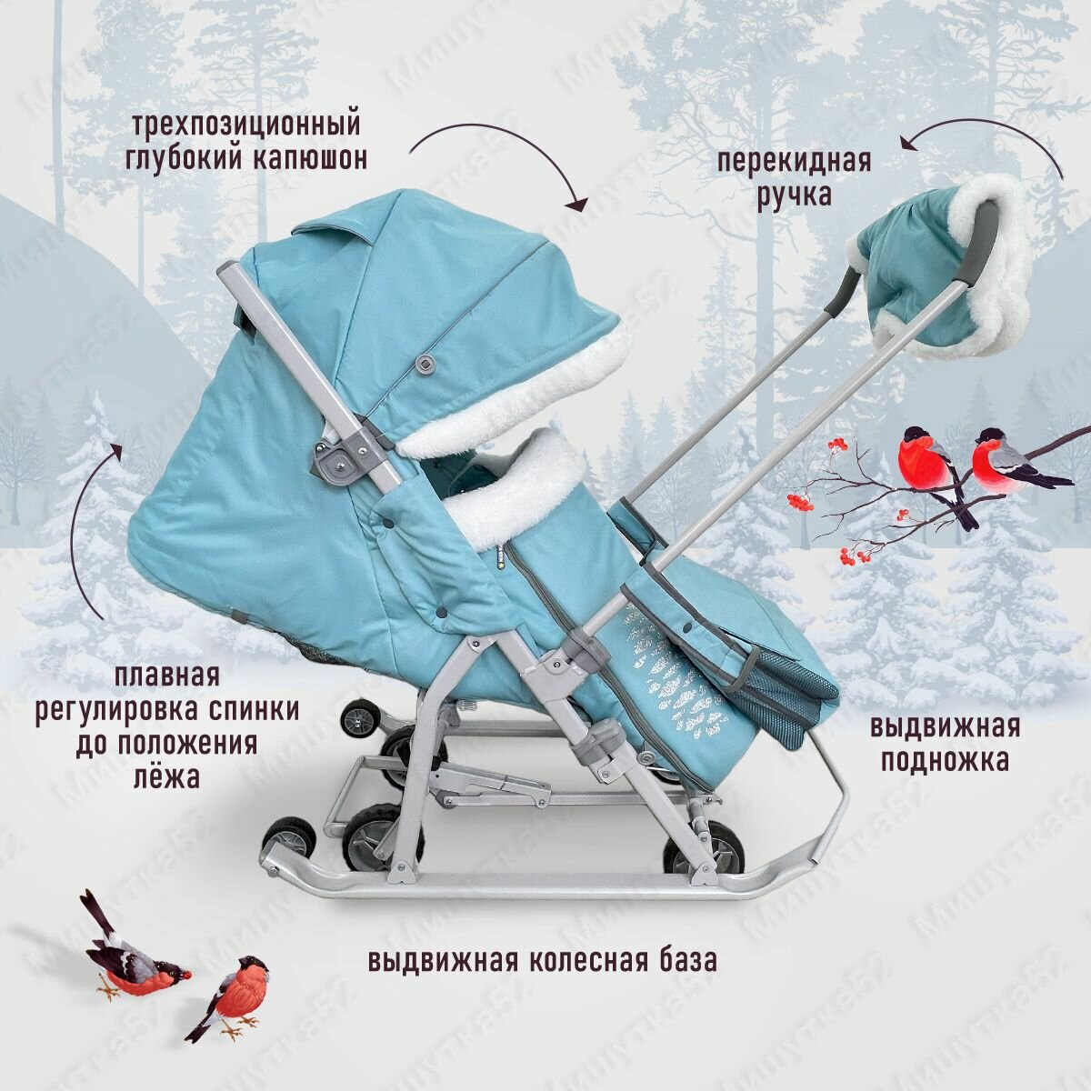 Санки коляска Ника с перекидной ручкой, обновленный дизайн, рама серая интересное: