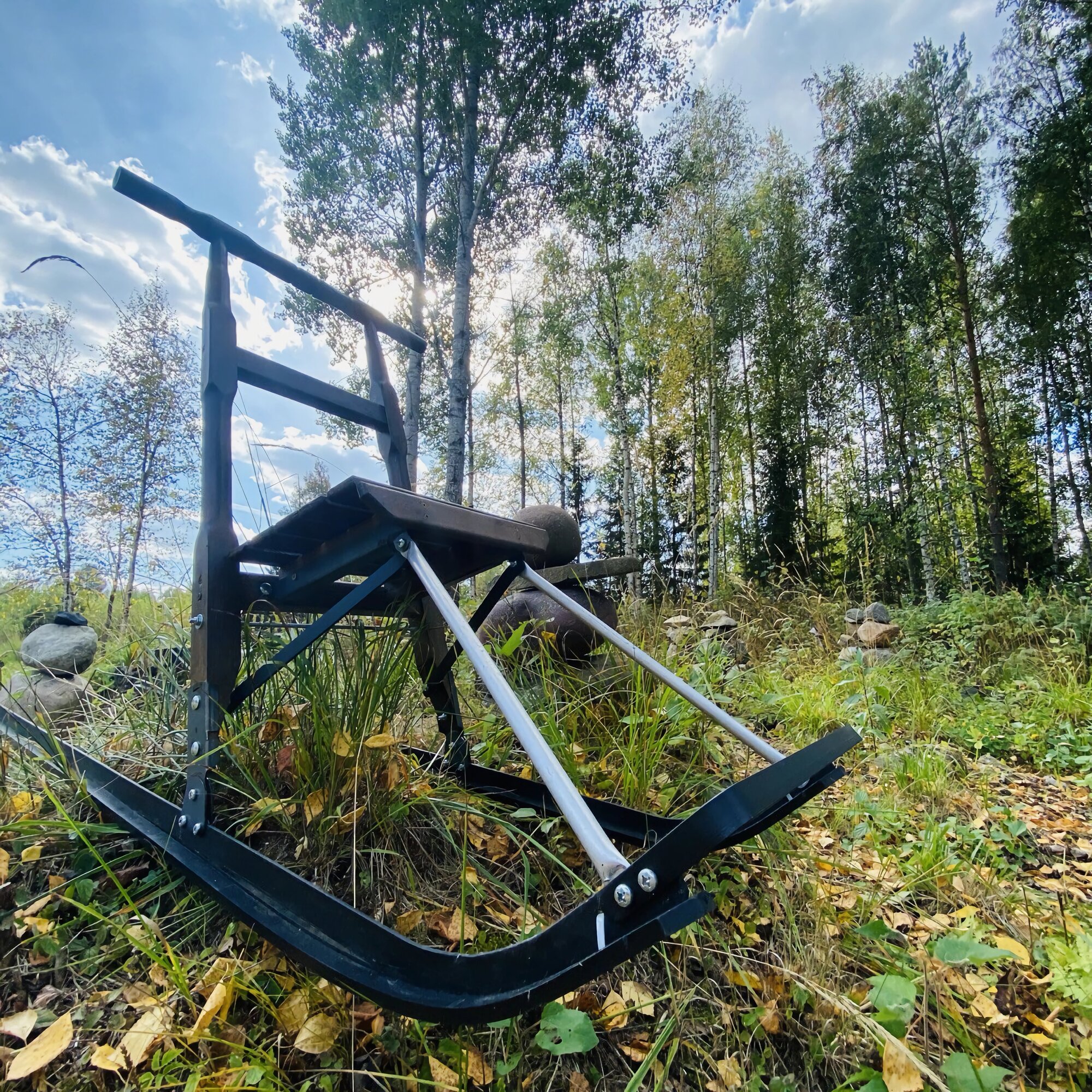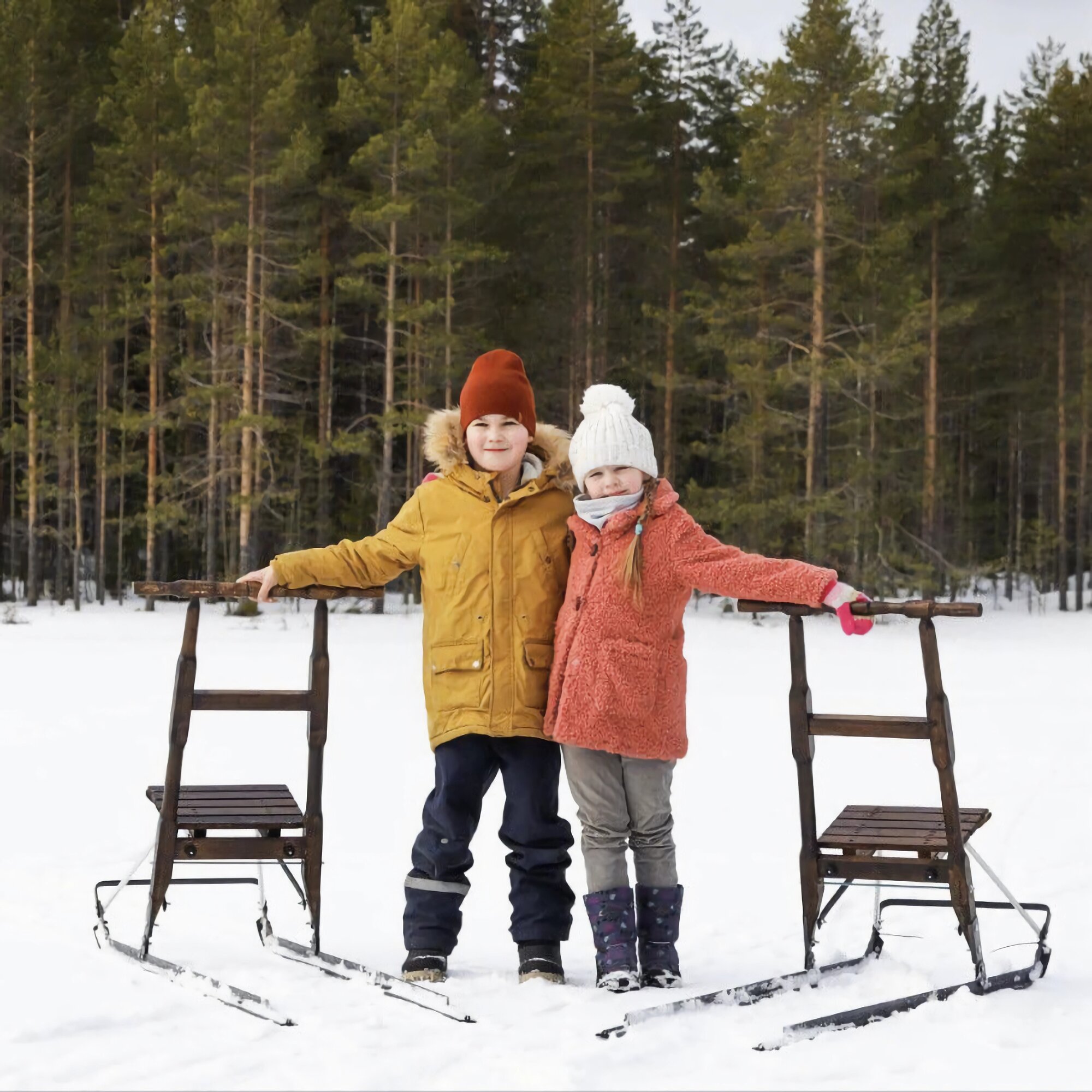 Финские сани для детей и взрослых с накладками на полозья для катания по снегу, цвет коричневый (оттенок палисандр), 175х56х86 см интересное: