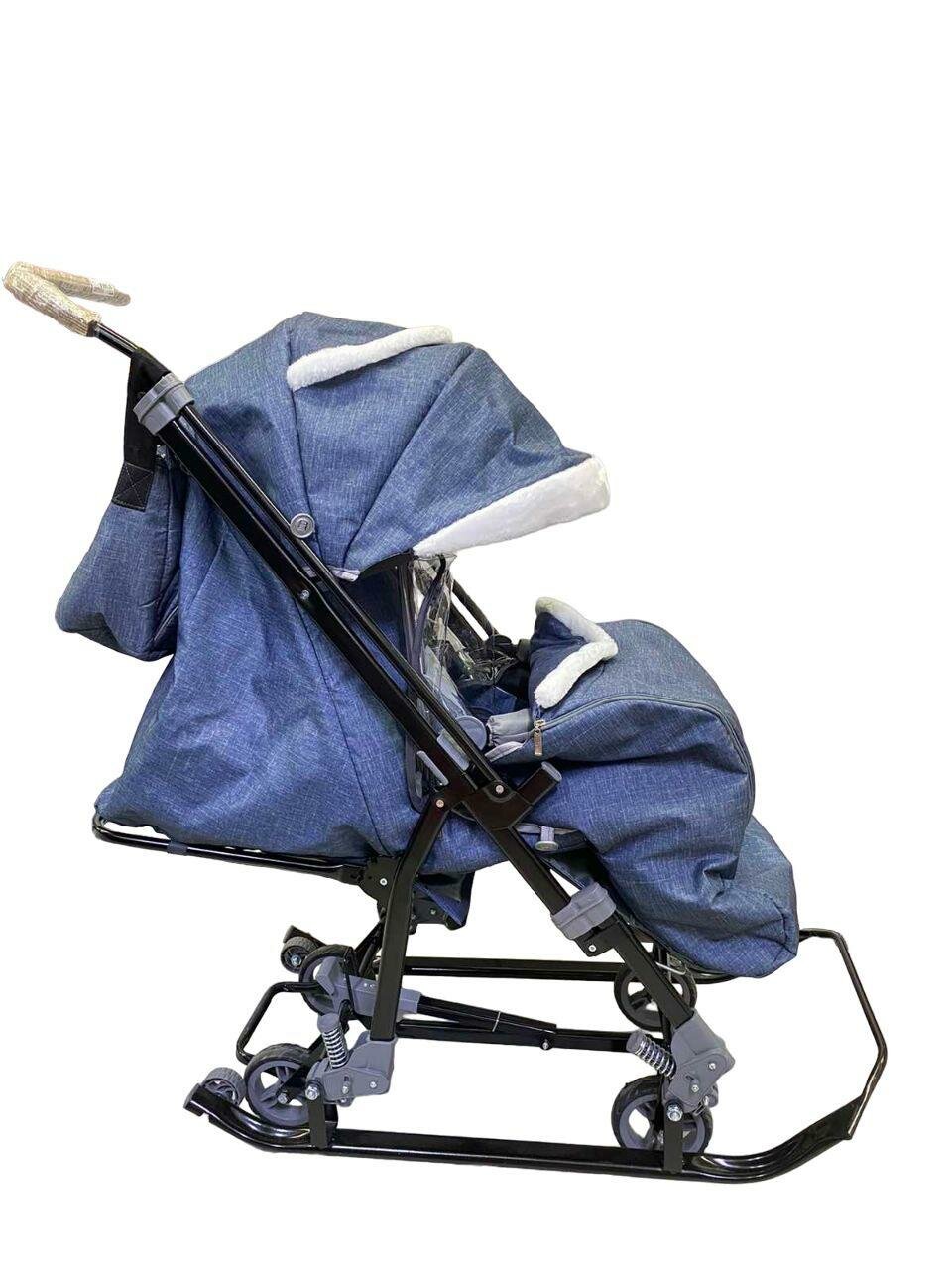 Купить Санки-коляска Galaxy kids LUXE 5-1 лен сине-зеленый