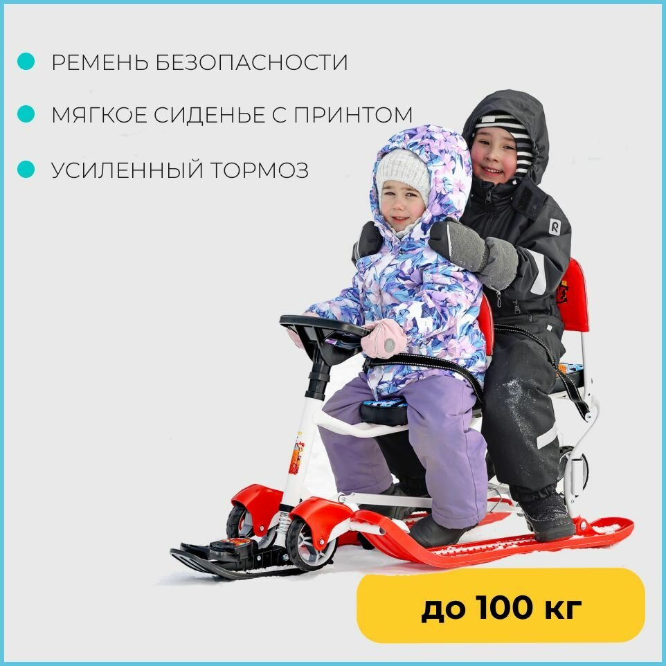 Снегокат Ника-SNOWPATROL (SNOWPATROL 2) рама белая со спинкой, трос авт. нам, велоруль