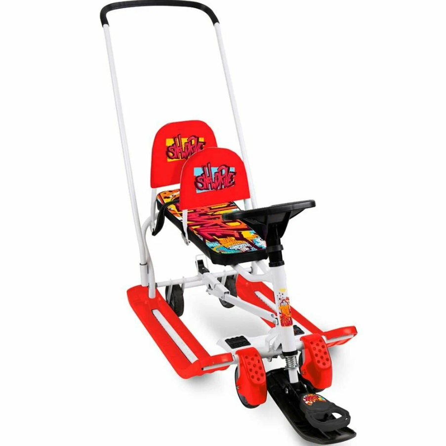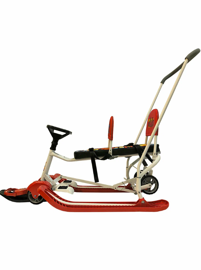 Снегокат Ника-SNOWPATROL (SNOWPATROL 2) рама белая со спинкой, трос авт. нам, велоруль