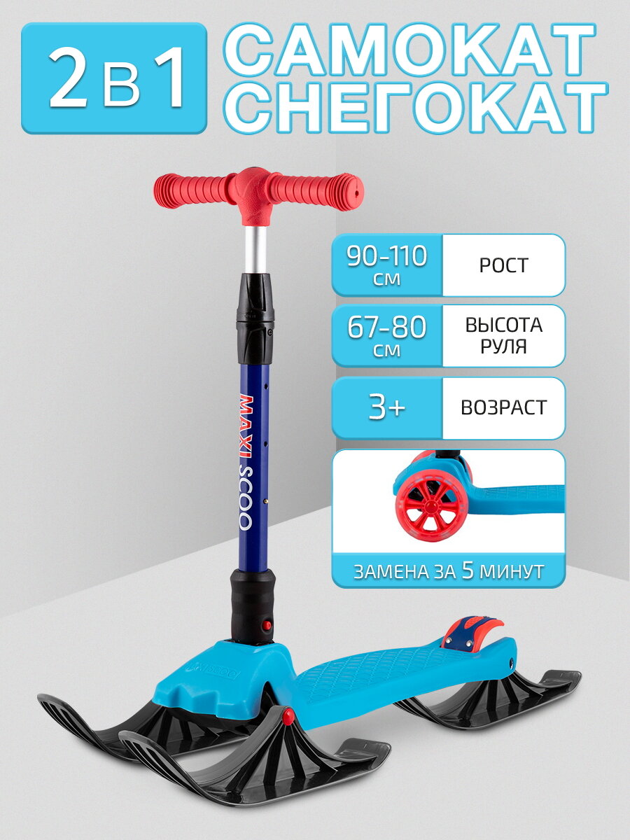 Самокат трехколесный MAXISCOO Junior Delux с лыжами интересное: