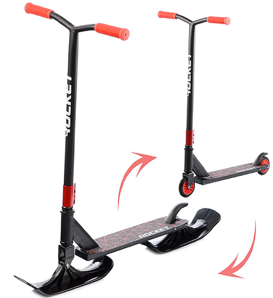 Самокат-снегокат трюковой, 2 в 1, вращение руля 360 гр, максимальная нагрузка 100 кг, красный интересное: