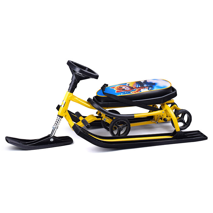 Снегокат детский 111 "Mobile" с Т-образным толкателем и колесной базой (Котик на желтом снег интересное: