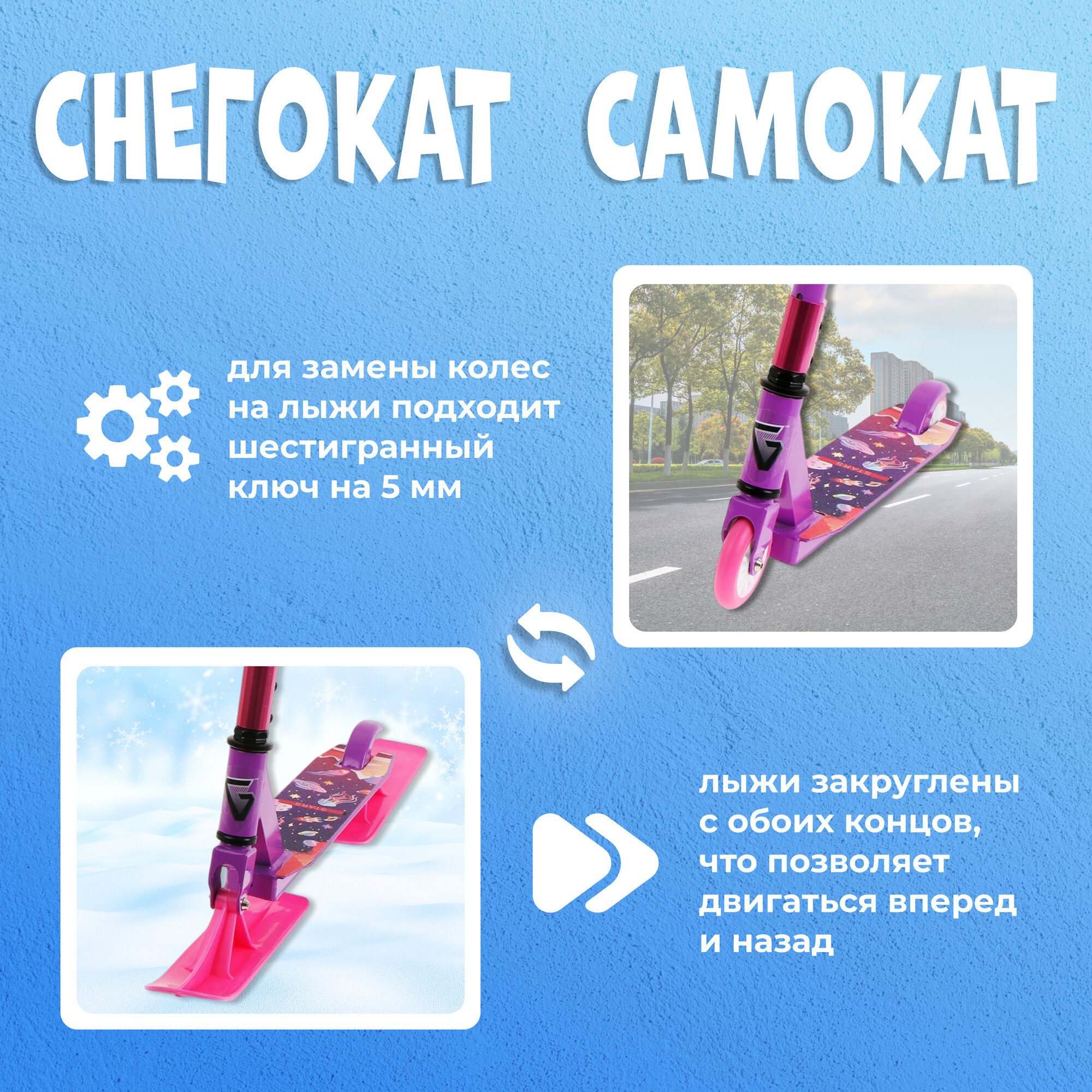Самокат-снегокат, цвет розовый интересное: