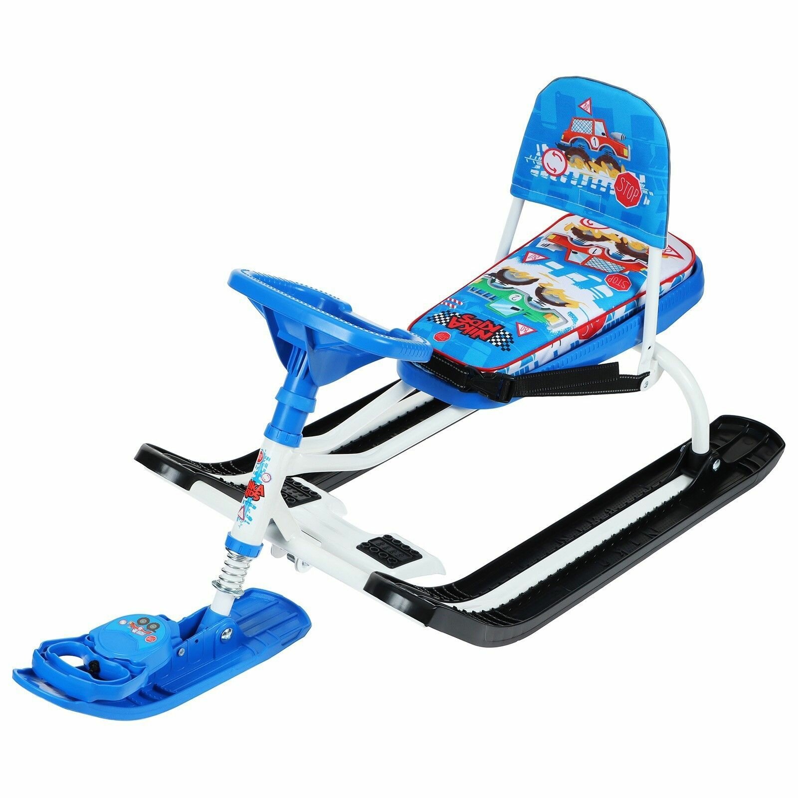 Снегокат Ника-SNOWPATROL (SNOWPATROL 2) рама белая со спинкой, трос авт. нам, велоруль