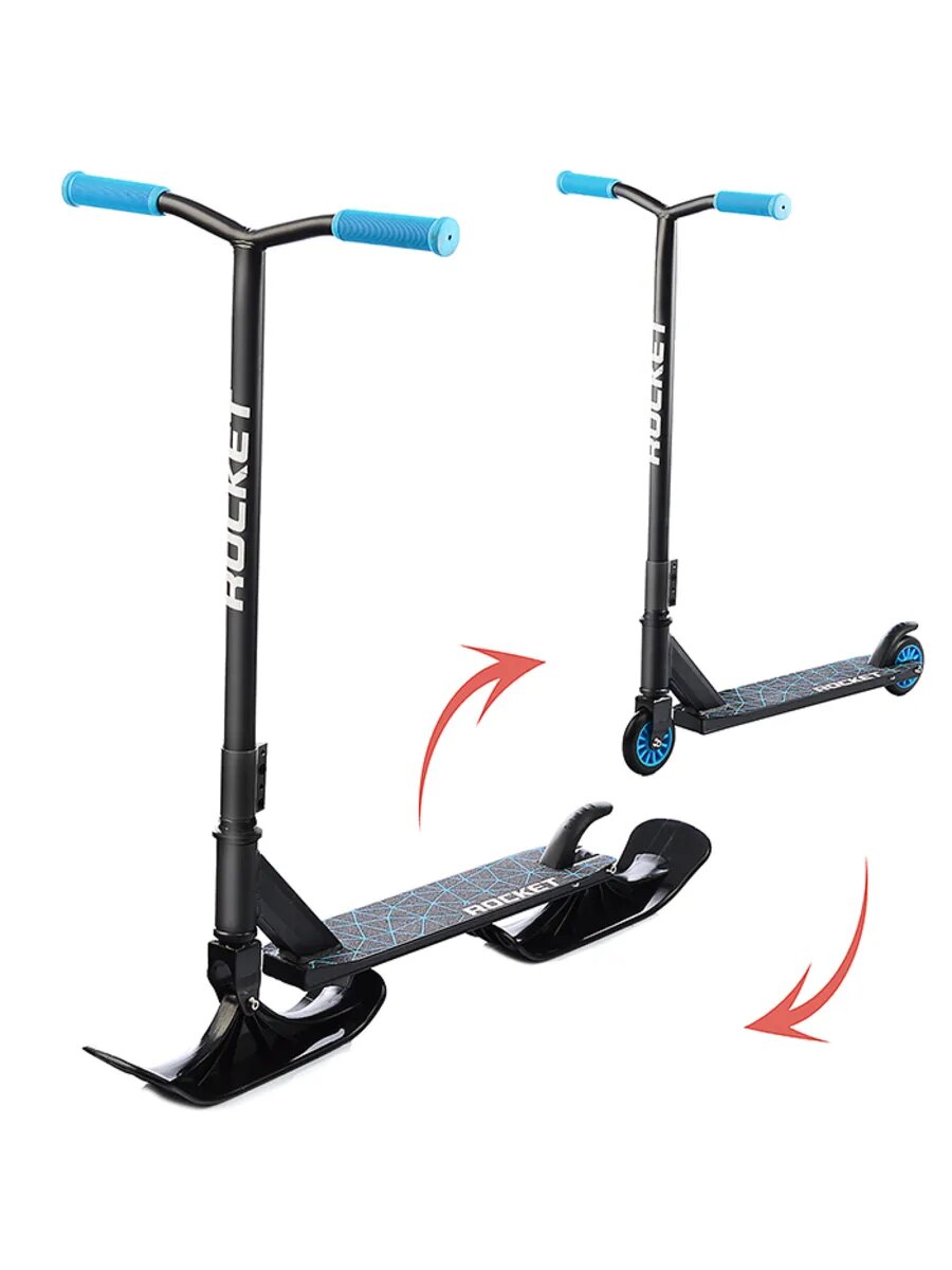 Самокат-снегокат трюковой в коробке (синий) интересное: