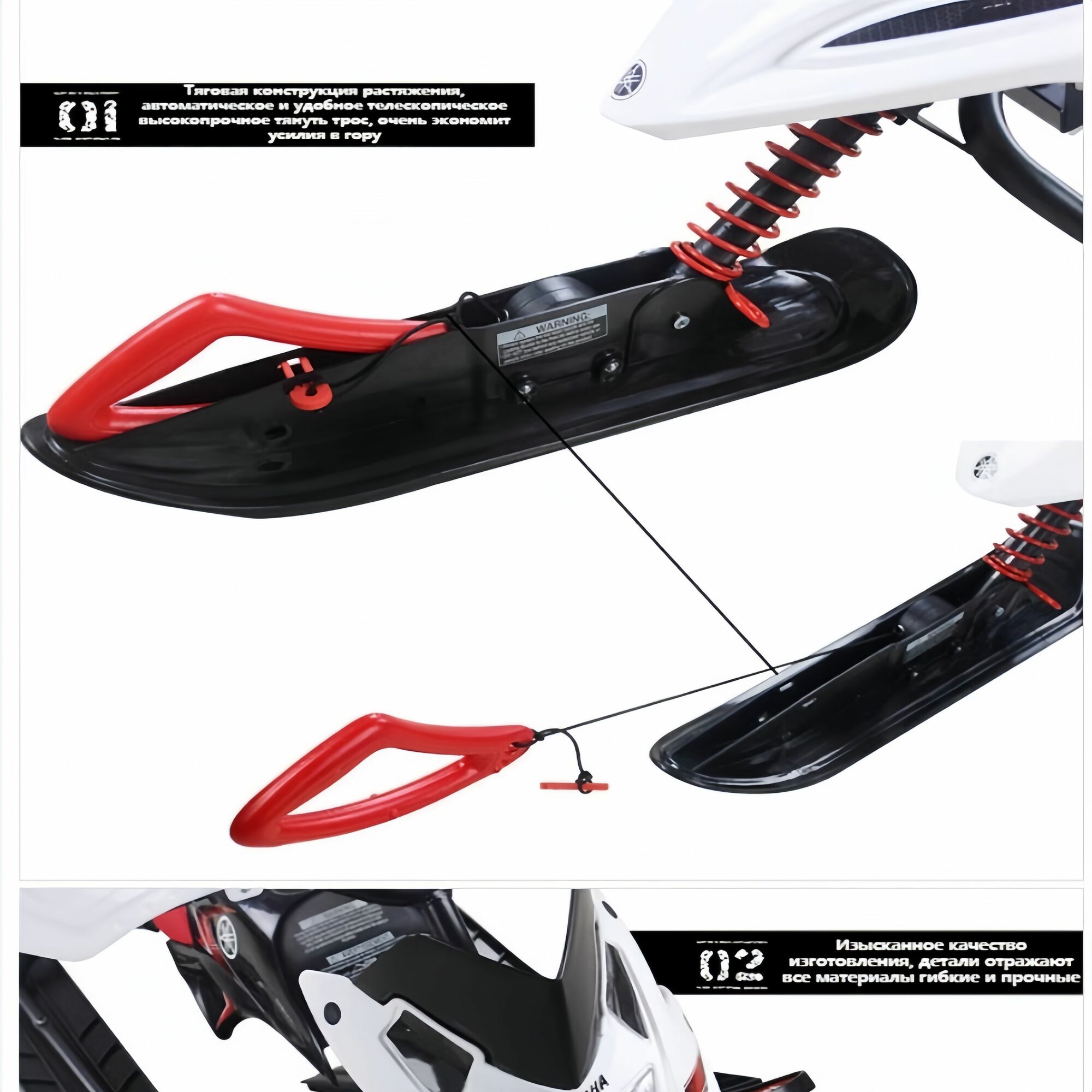 Снегокат Ника-SNOWPATROL (SNOWPATROL 2) рама белая со спинкой, трос авт. нам, велоруль